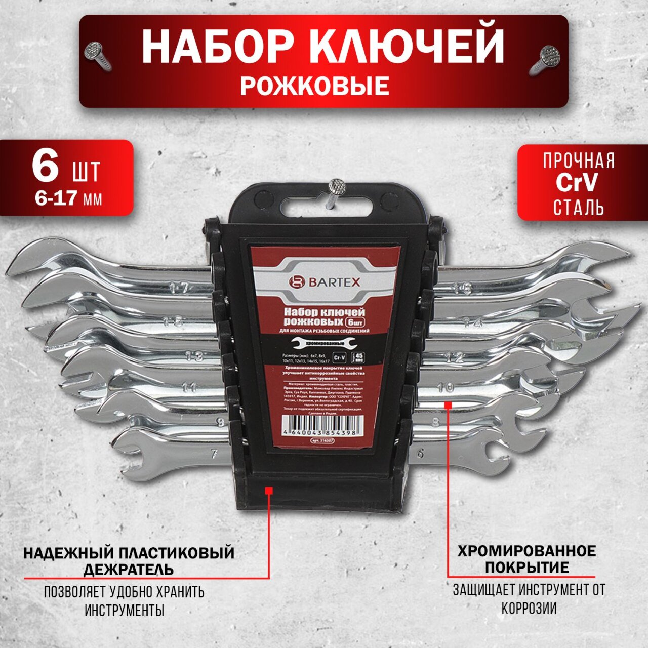Вы можете приобрести «Набор ключей рожковый, 6 предметов, Bartex, 6-17 мм, хромированный зеркальный, CrV сталь, держатель» и другие товары в нашем интернет-магазине в Таганроге по низким ценам и с бесплатным самовывозом.