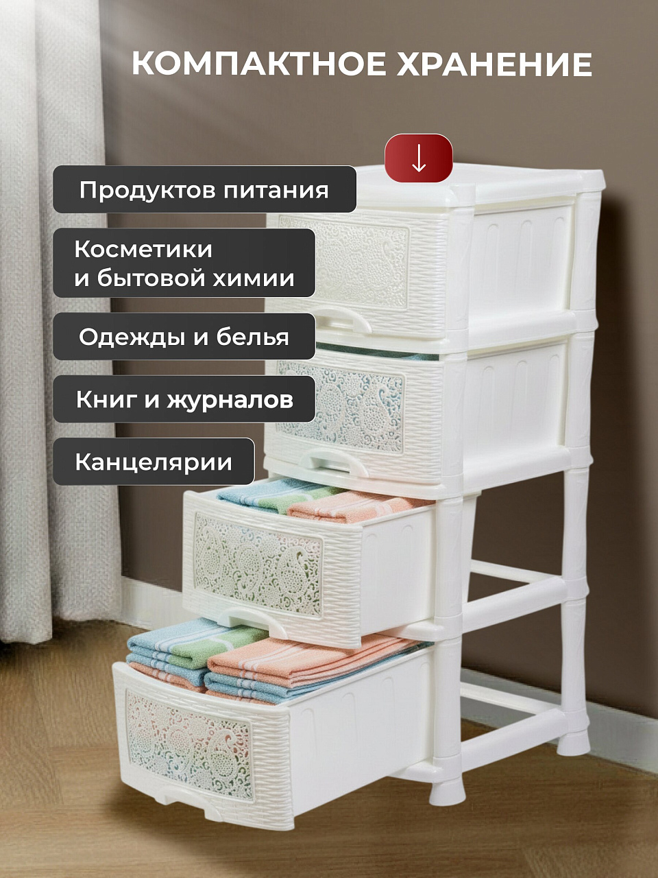 - Количество ящиков: 4 шт.
