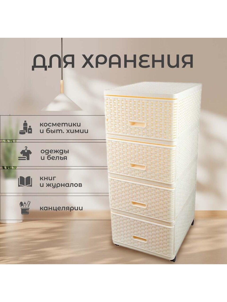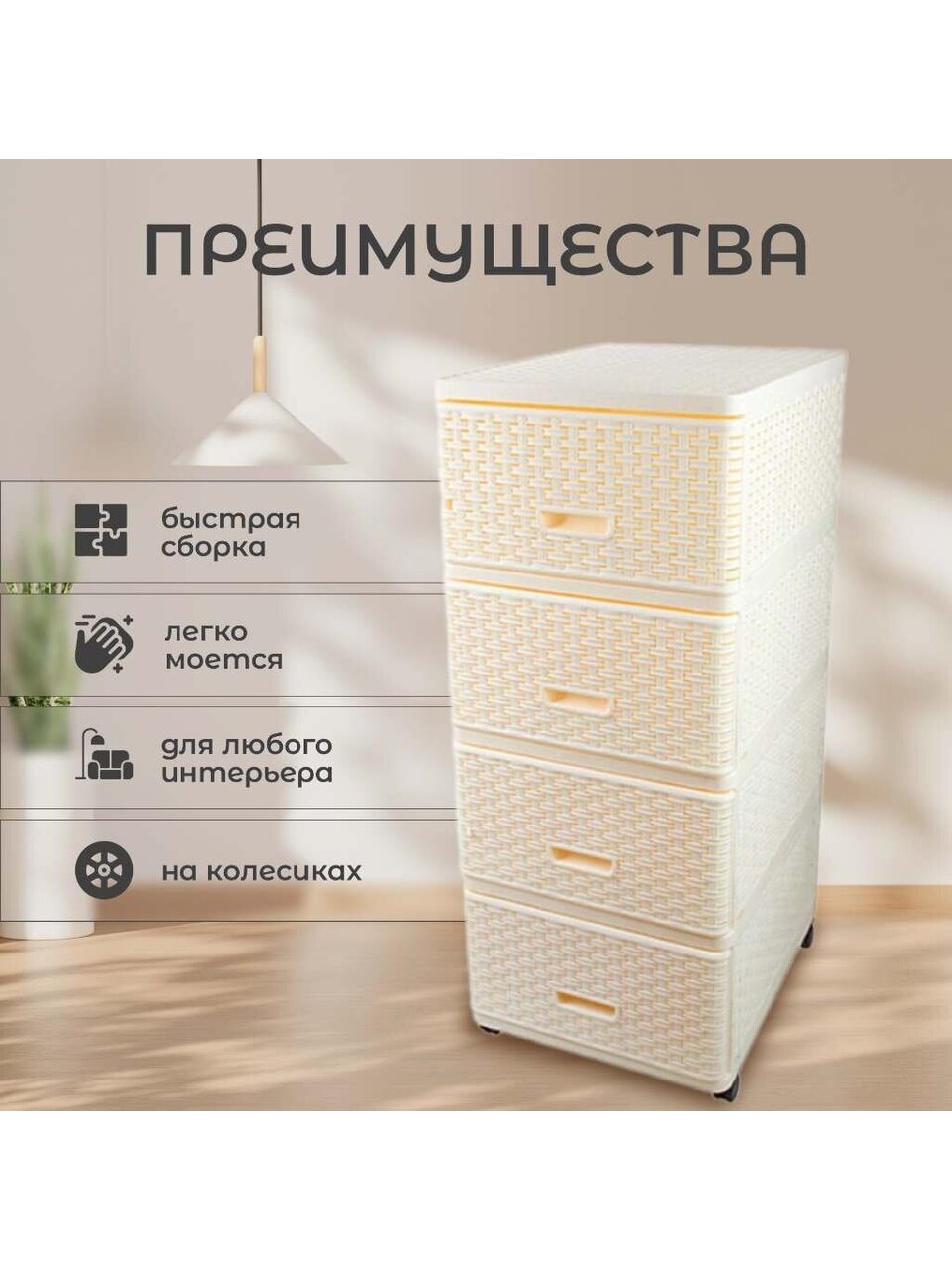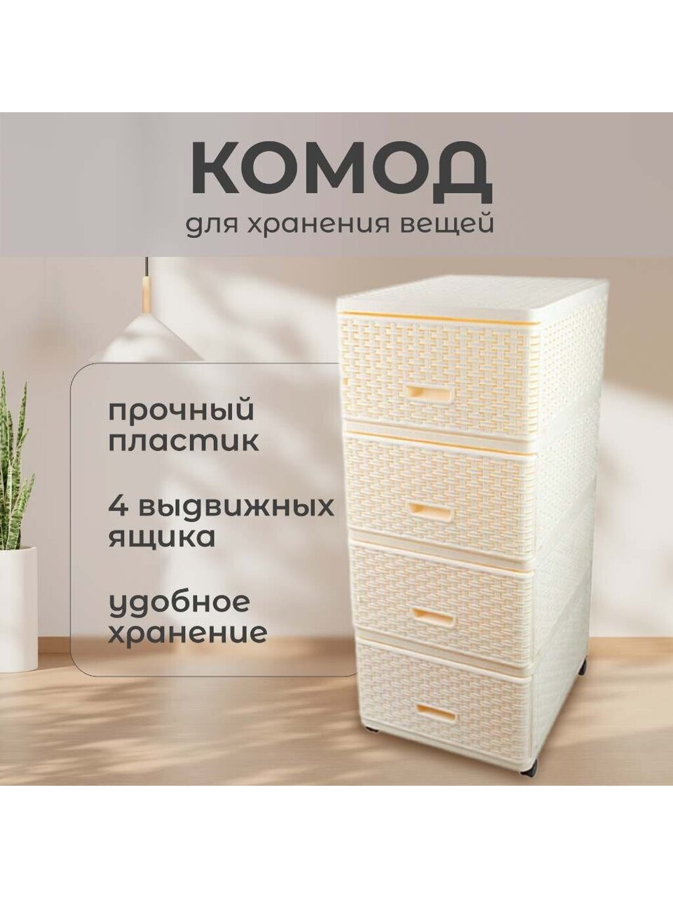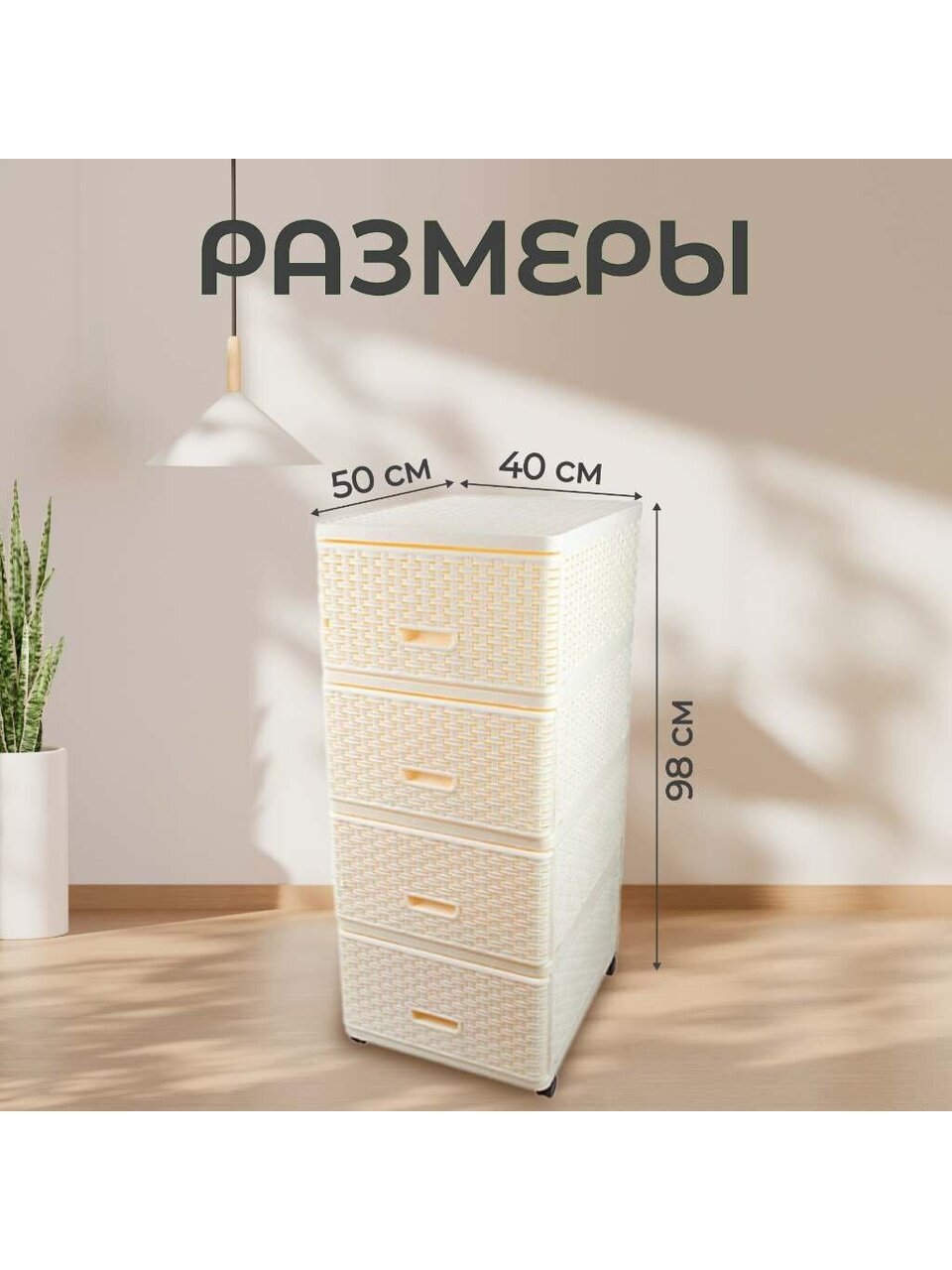 Комод 4 ящика, Дюна, 40х50х98 см, кремовый, плетеный, 04054, Dunya Plastik