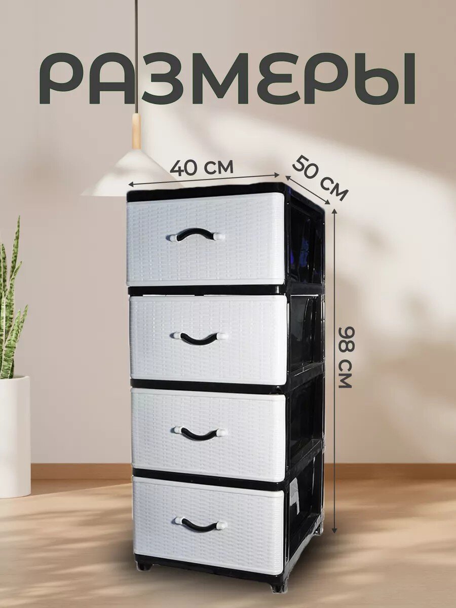 Вы можете приобрести «Комод 4 ящика, Дюна, 40х50х94 см, черно-белый, 04014, Dunya Plastik» и другие товары в нашем интернет-магазине в Казани по низким ценам и с бесплатным самовывозом.