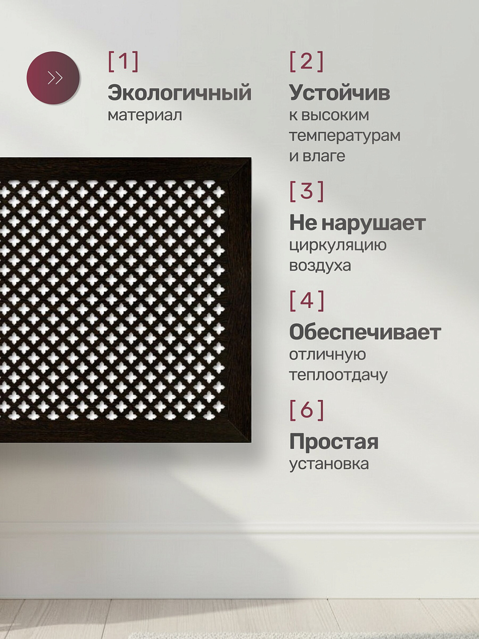Декоративный экран для радиатора отопления - это идеальное решение для любого интерьера. Он служит не только для маскировки радиатора, но и для украшения помещения. Специальная конструкция экрана обеспечивает отличную теплоотдачу, сохраняя комфортный микроклимат в помещении и предотвращая потери тепла.