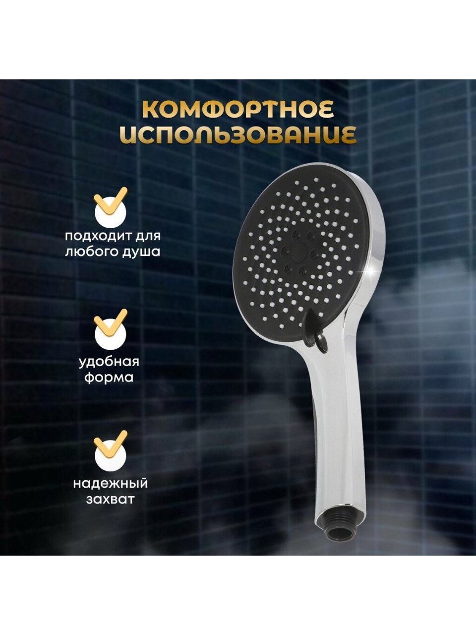 - Душевая лейка имеет удобную форму, которая обеспечивает надежный захват и комфорт при использовании.