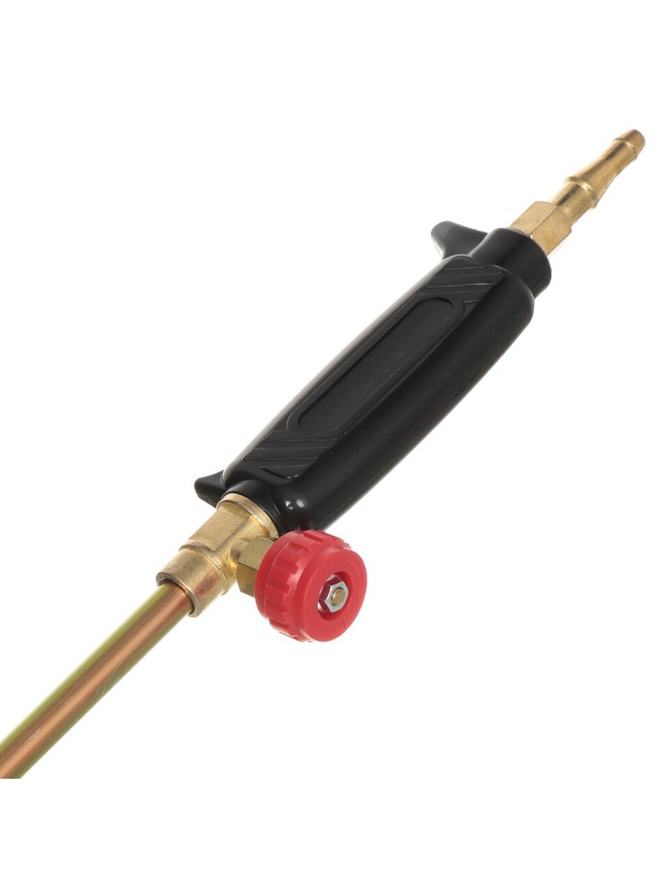 После окончания работы необходимо погасить пламя, перекрыв вентиль, закрыть вентиль баллона и после этого стравить остатки газа в атмосферу приоткрыв вентиль и нажав на рычаг.