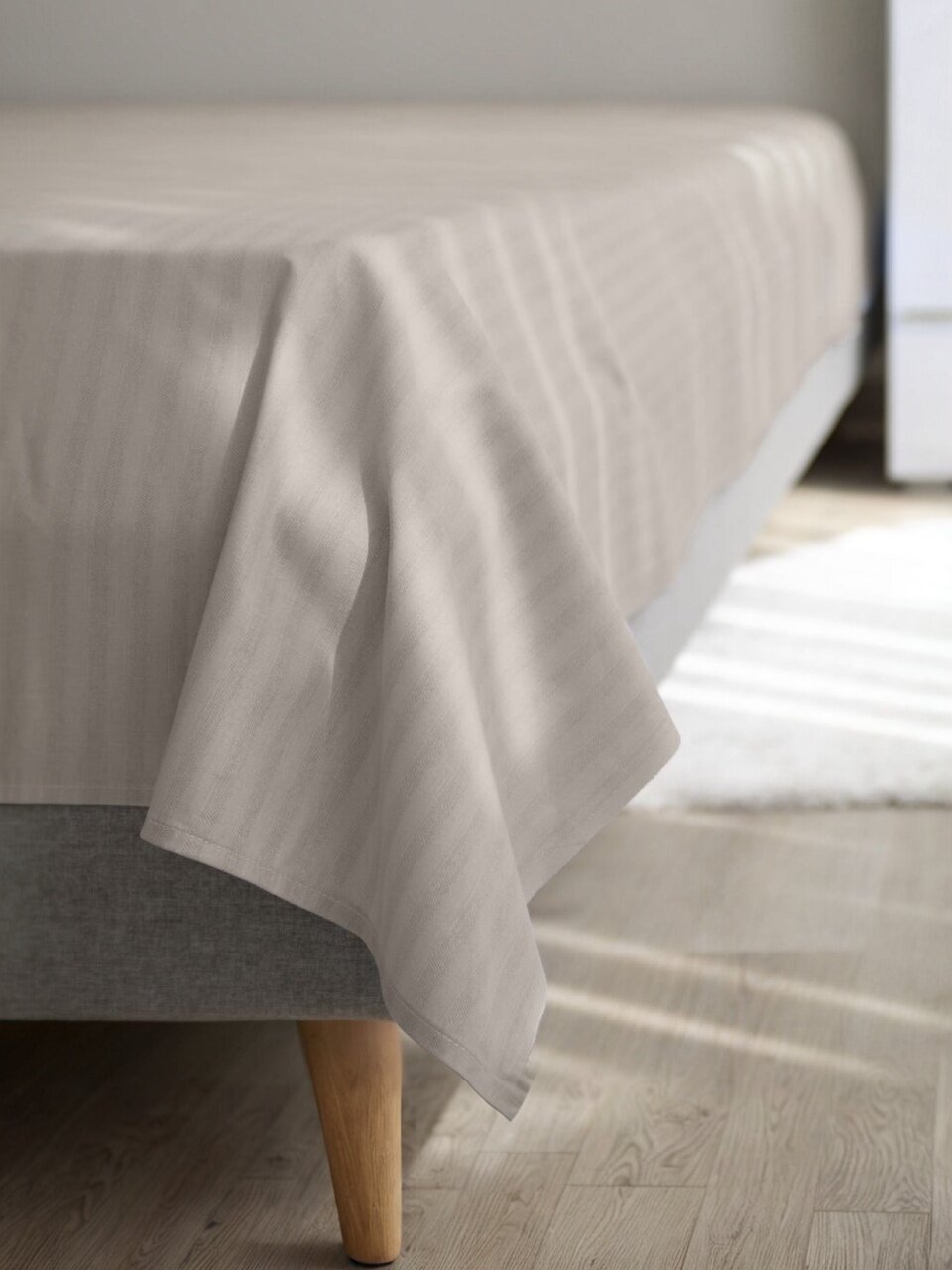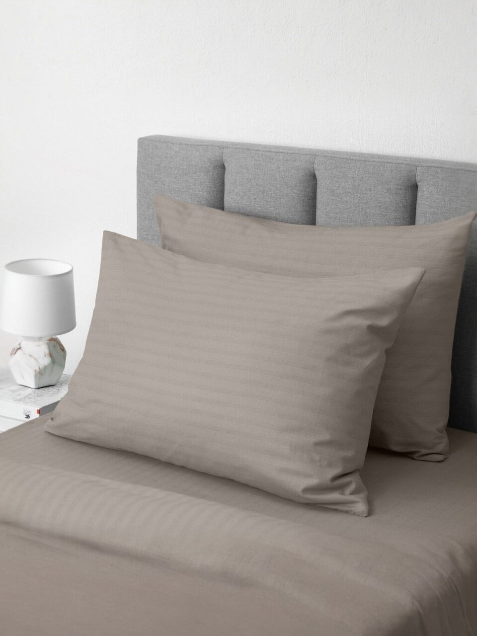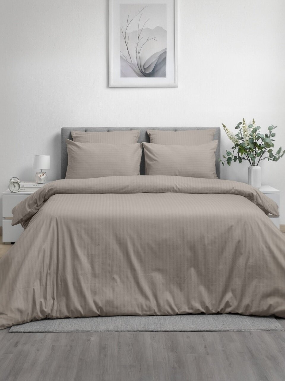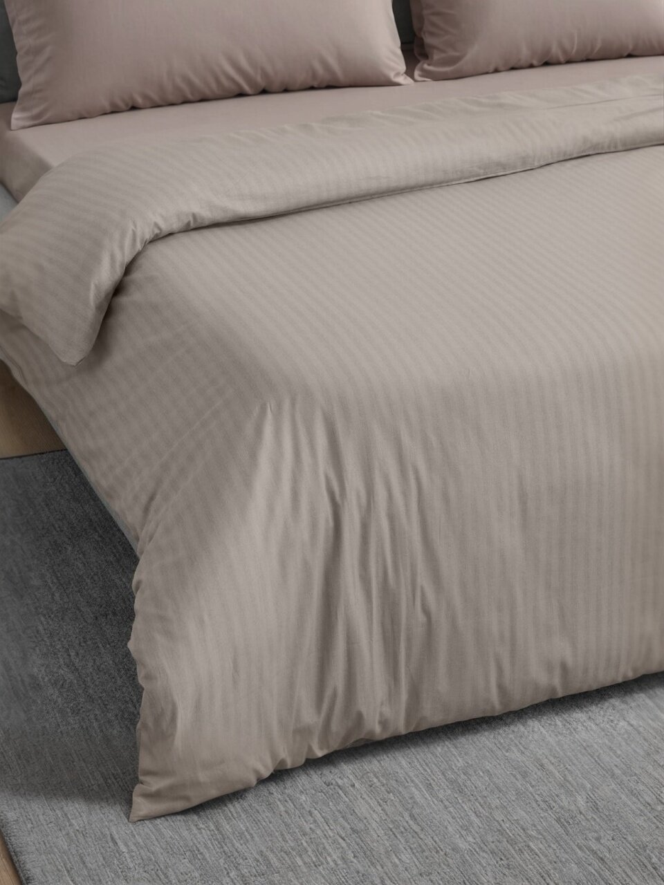 - Премиальный страйп-ранфорс: гладкая фактура, прочность, легкий уход и стильный однотонный дизайн с полосками