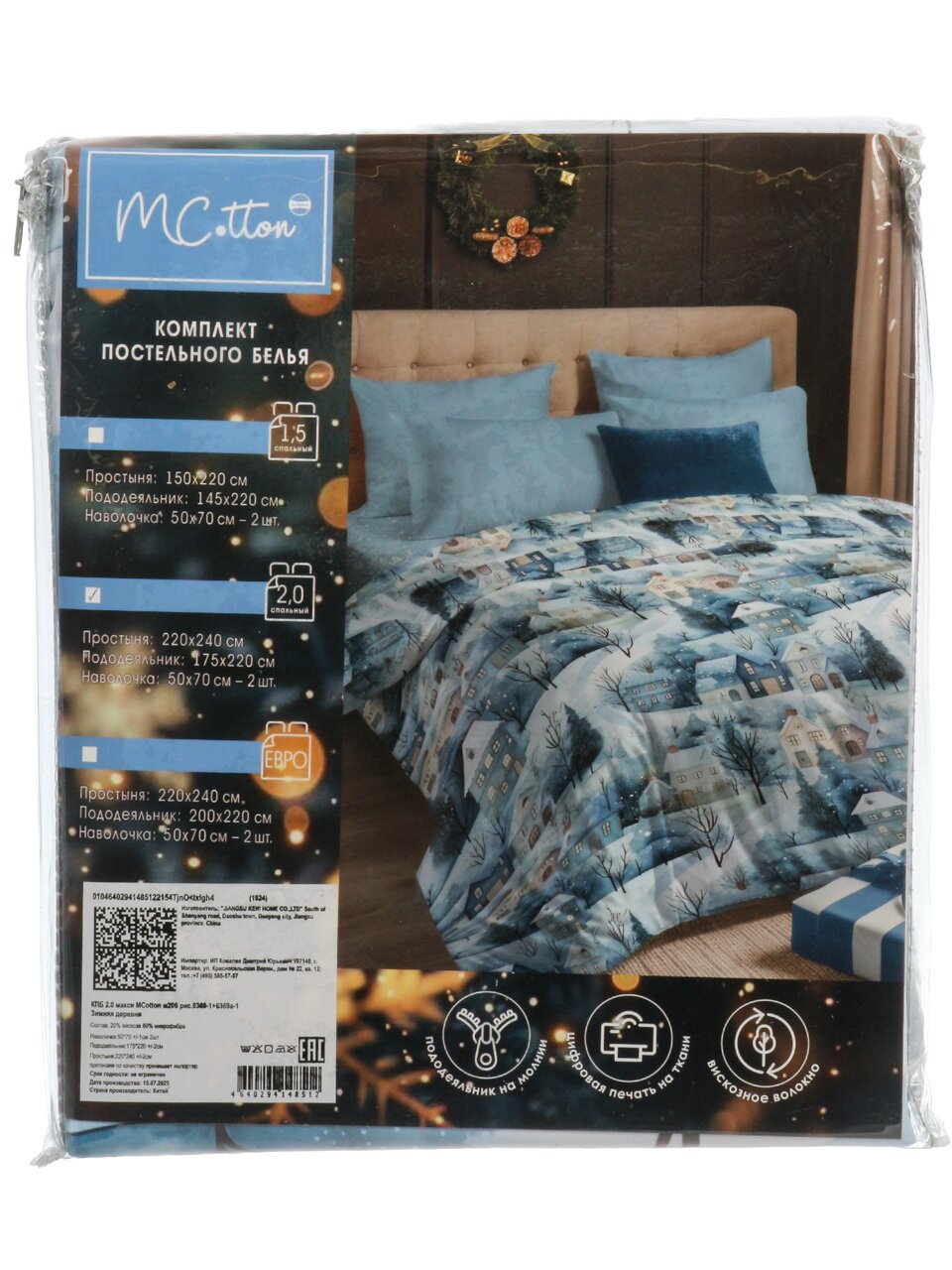 Постельное белье 2-спальное Mcotton «Зимняя деревня» — уют и новогоднее настроение: микросатин, молния, подарочная упаковка, долговечность и стиль для дома и подарка.