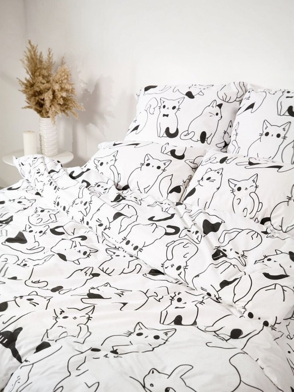 - Универсальные размеры: простыня 180х220 см, пододеяльник 175х215 см, 2 наволочки 50х70 см — подходят для стандартных двуспальных кроватей