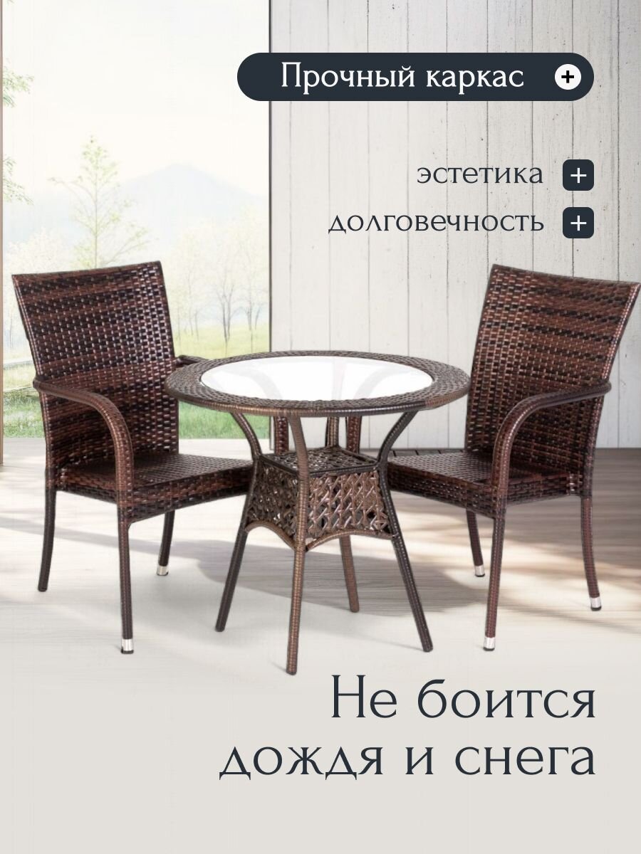 Компактный стол размером 60х60х60 см и два кресла размером 57х62х90 см идеально подойдут для небольших пространств, обеспечивая удобство и функциональность. Этот комплект станет отличным дополнением для утреннего кофе, обедов на свежем воздухе или вечерних посиделок с друзьями.