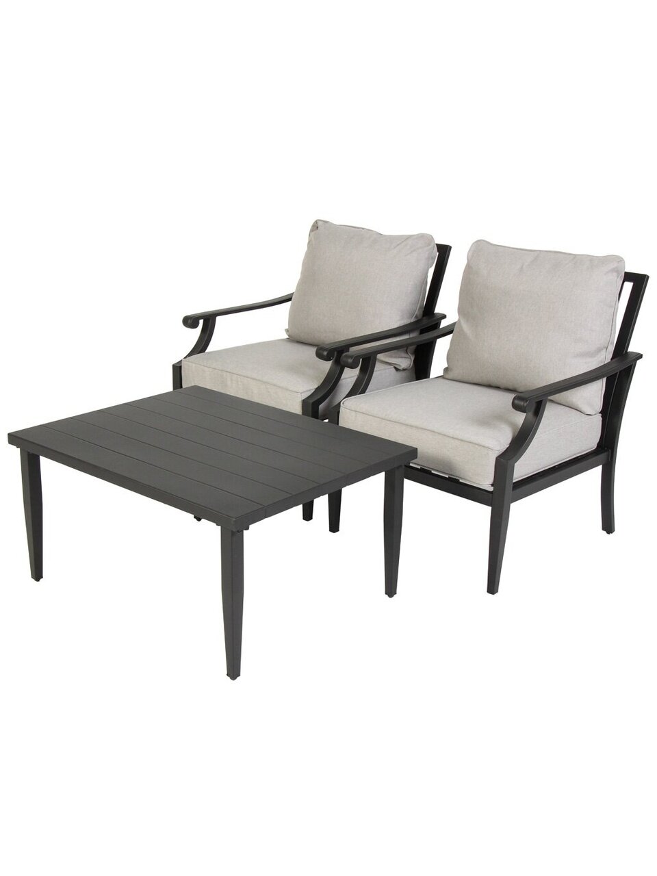 Садовая мебель Оберау – идеальное решение для создания уюта и стиля на даче или в саду. Комплект включает стол, два стула и диван, что позволяет комфортно разместить до четырех персон. Строгий черный цвет гармонично впишется в современный или классический интерьер, подчеркивая статус и вкус владельца. Прочный металлический каркас и столешница из металла гарантируют долговечность, устойчивость к погодным условиям и простоту ухода. Подушки из полиэстера обеспечивают дополнительный комфорт и делают отдых на свежем воздухе еще приятнее.
