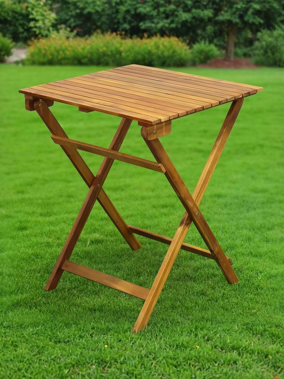 - Складной небольшой прямоугольный стол отлично подойдет для пикника, дачи или открытой террасы;