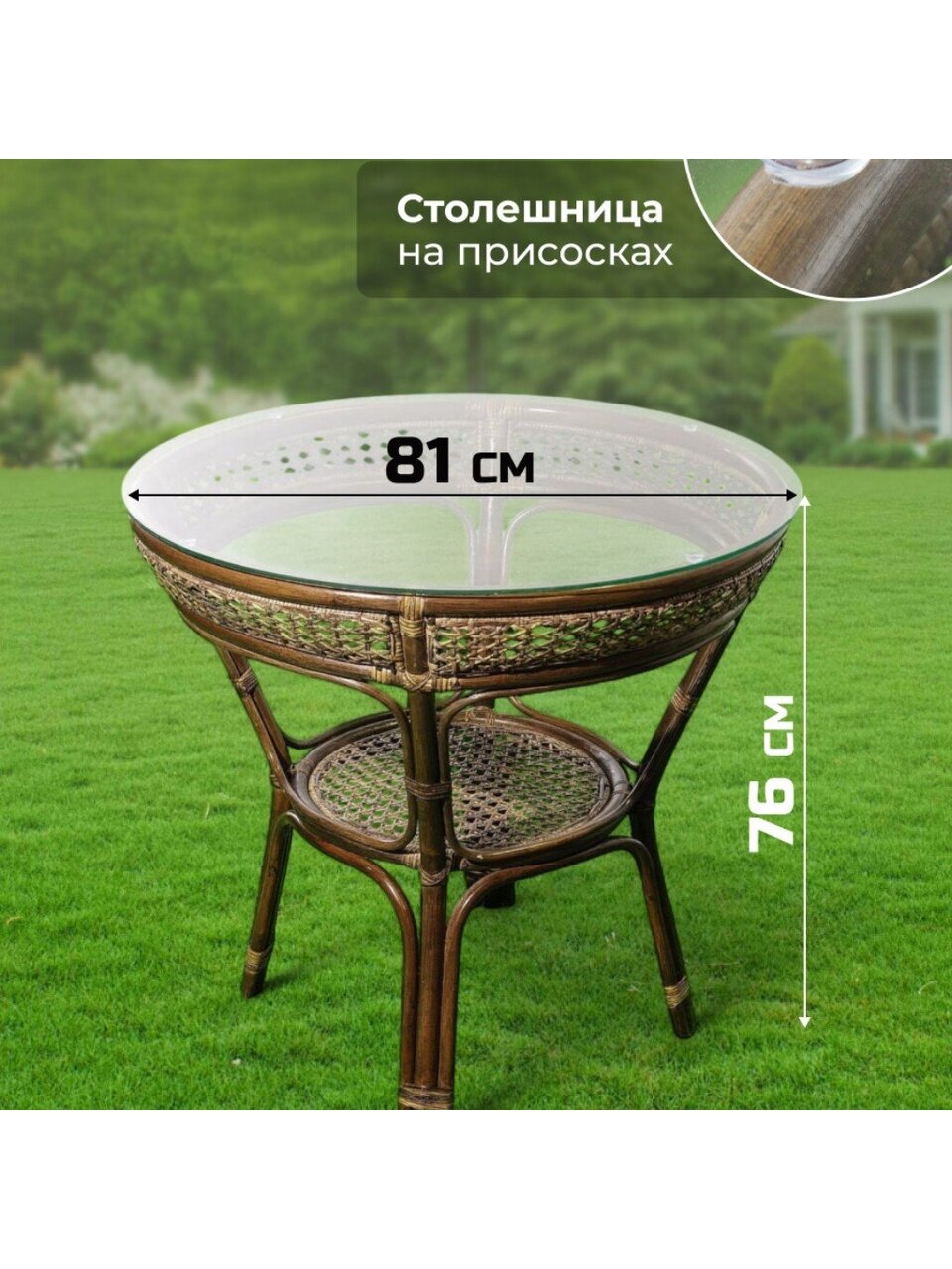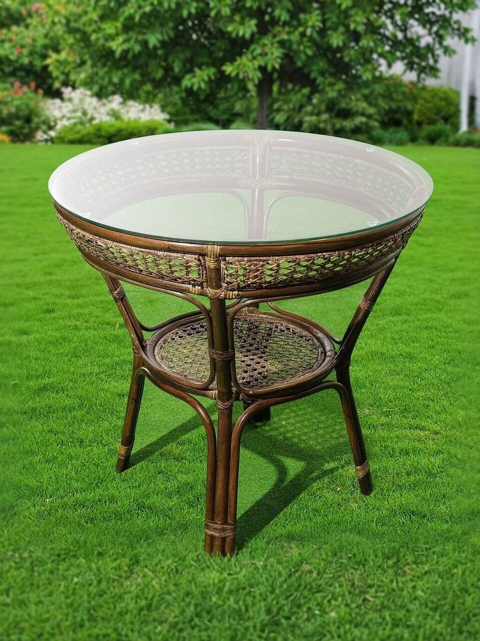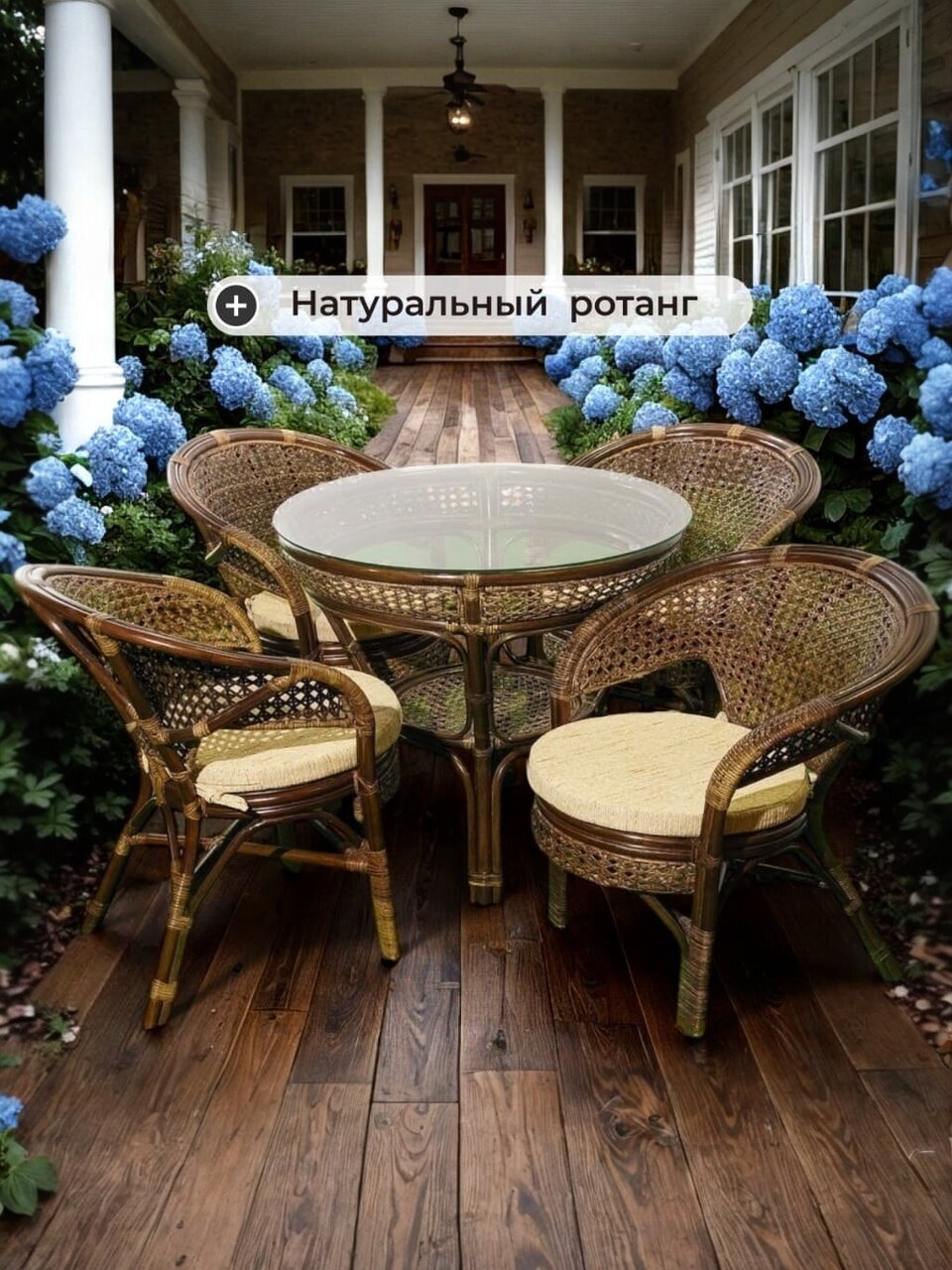 Плетеная мебель — это неповторимый стиль и уютная атмосфера, создающая умиротворенность и расслабленность. Лоза ротанга чарует своей невероятной теплотой и декоративностью. Легкое ажурное переплетение ротанга и прозрачная стеклянная столешница придают мебели невесомый, воздушный вид.