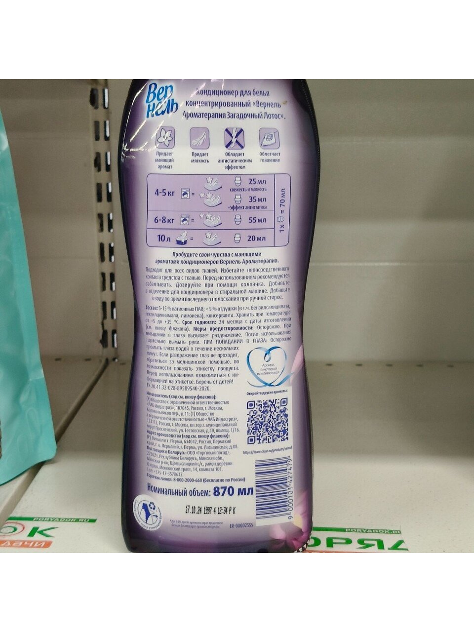 Вы можете приобрести «Кондиционер для белья Вернель, 0.87 л, Ароматерапия Загадочный лотос» и другие товары в нашем интернет-магазине в Серпухове по низким ценам и с бесплатным самовывозом.