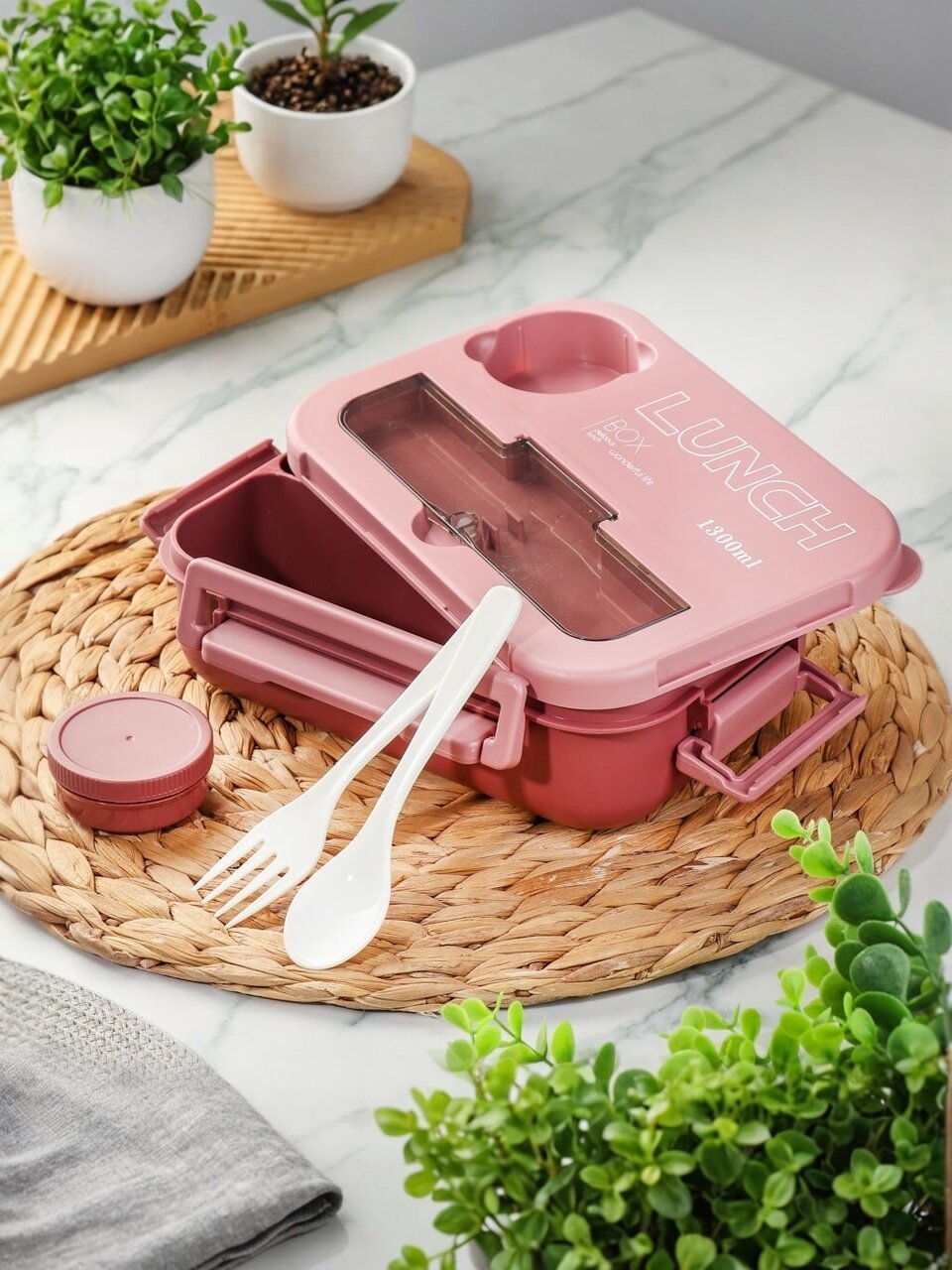 Контейнер ланч-бокс 1.3 л — это удобное решение для хранения и транспортировки обеда, завтрака или перекусов. Герметичная крышка с защёлкой надёжно защищает содержимое, предотвращая проливы и сохраняя свежесть продуктов. Благодаря компактным размерам и продуманной форме контейнер легко помещается в рюкзак или сумку, а розовый цвет добавляет индивидуальности.