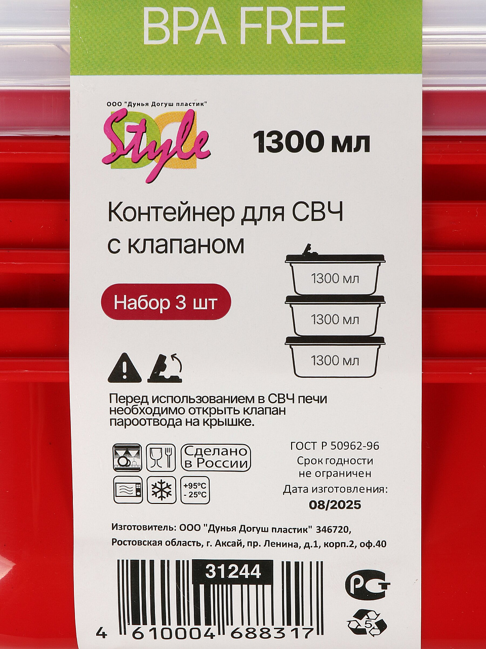 Вы можете приобрести «Контейнер пищевой пластик, 1.3 л, 22.5х15.5х6.5 см, 3 шт, красный, прямоугольный, с клапаном, DDStyle, 31244» и другие товары в нашем интернет-магазине в Борисоглебске по низким ценам и с бесплатным самовывозом.