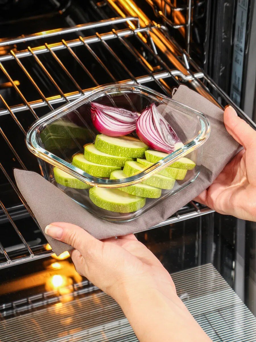 Стекло не впитывает запахи, не окрашивается и не выделяет вредных веществ при нагреве. Контейнер служит дольше, безопасен для хранения детского и диетического питания.
