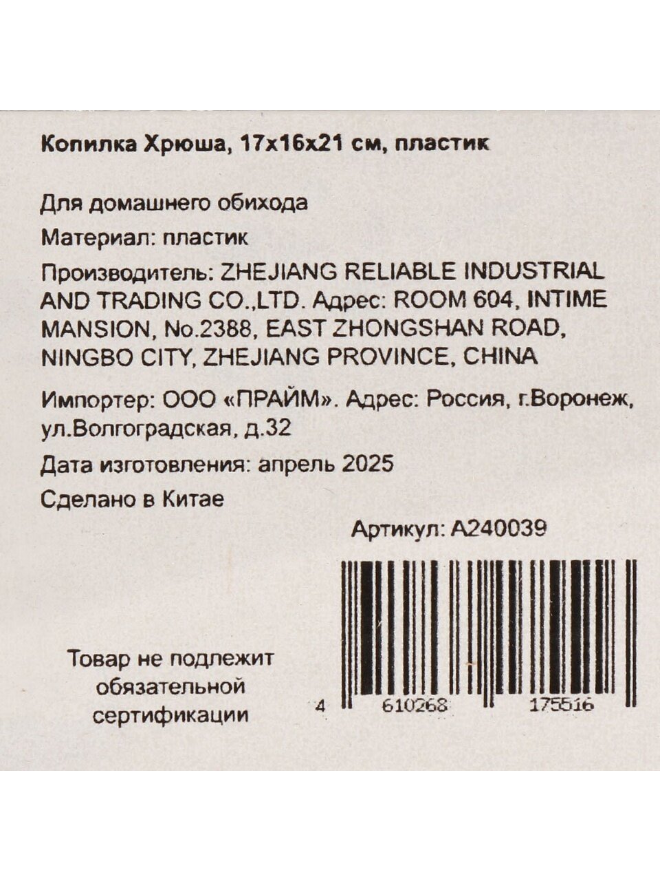 Вы можете приобрести «Копилка Хрюша, 17х16х21 см, пластик, A240039» и другие товары в нашем интернет-магазине в Обнинске по низким ценам и с бесплатным самовывозом.