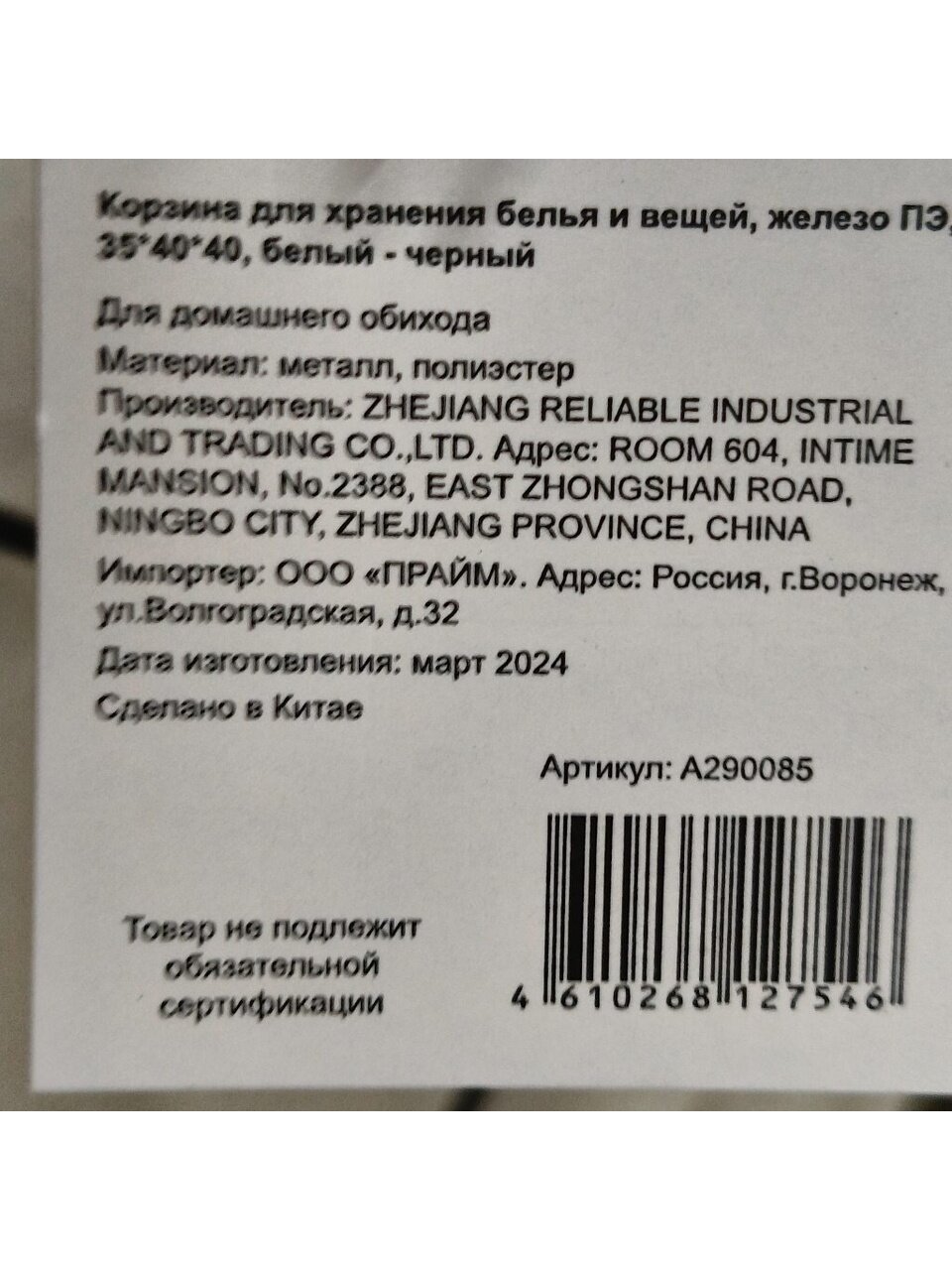 Вы можете приобрести «Корзина для белья и хранения вещей, 35х40х40 см, полиэстер, бело-черная, A290085» и другие товары в нашем интернет-магазине в Железногорске по низким ценам и с бесплатным самовывозом.