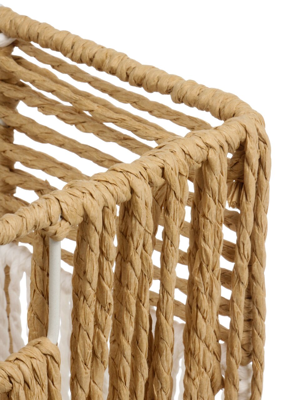 Корзина выполнена из хлопка и металла, не содержит ротанга и текстильной вкладки, не имеет острых краев — подходит для хранения детских игрушек и белья.