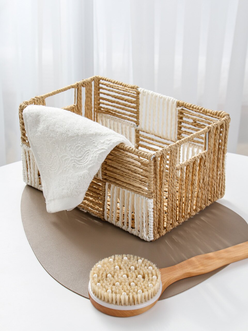 В отличие от пластиковых коробок, плетеная корзина обеспечивает естественную вентиляцию вещей, не электризуется и смотрится стильно в любом интерьере. Без крышки — быстрый доступ к содержимому, а удобные ручки позволяют легко переносить корзину по дому или на даче. Не содержит ротанга, что делает уход проще и исключает неприятные запахи.