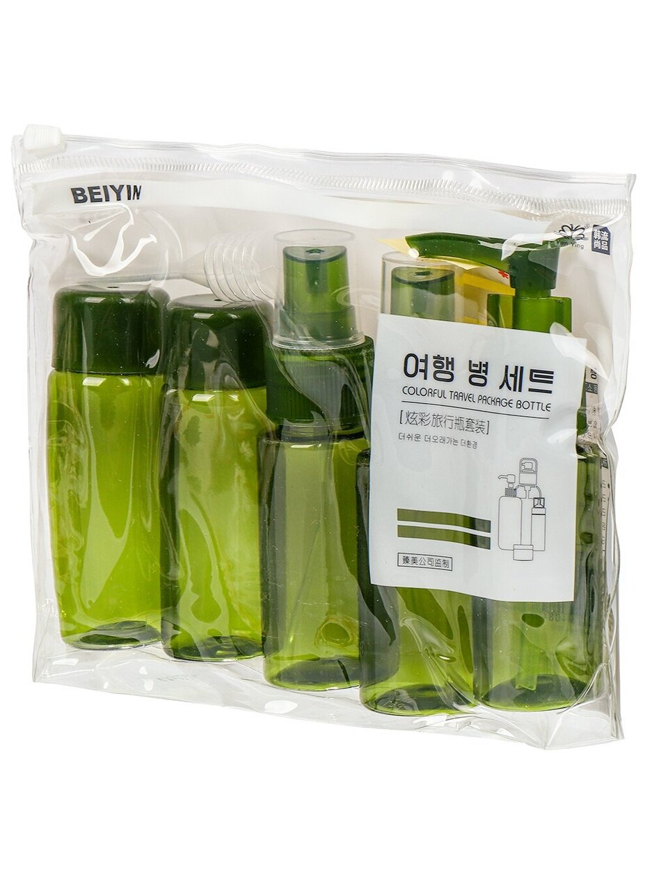 Удобный дорожный набор бутылочек для косметических средств предназначен для хранения шампуней, гелей для душа, бальзамов, тоников, лосьонов. Флаконы выполнены из пластика, компактны и практичны в использовании.