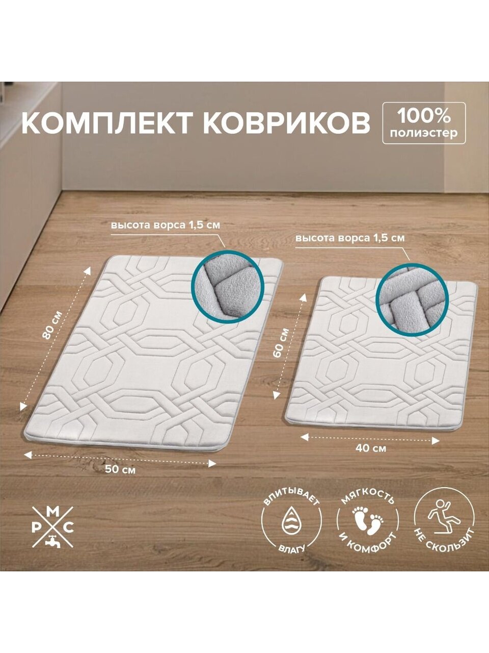- Размер комплекта: 40 х 60 см, 50 х 80 см;