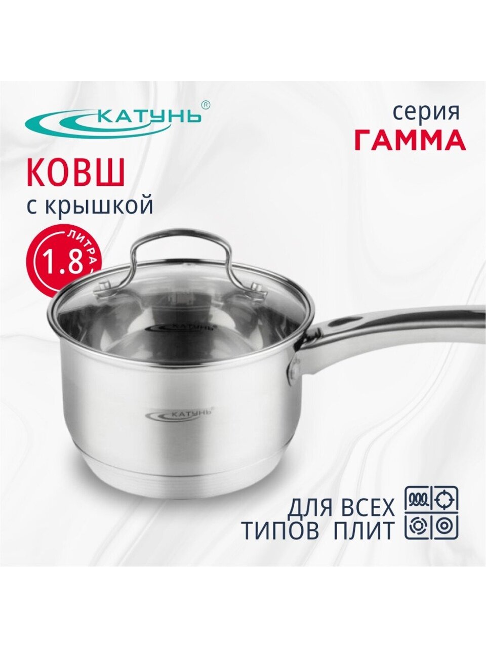Вы можете приобрести «Ковш нержавеющая сталь, 1.8 л, крышка стекло, ручка нержавеющая сталь, индукция, Катунь, Гамма, КТ20-К» и другие товары в нашем интернет-магазине в Иваново по низким ценам и с бесплатным самовывозом.