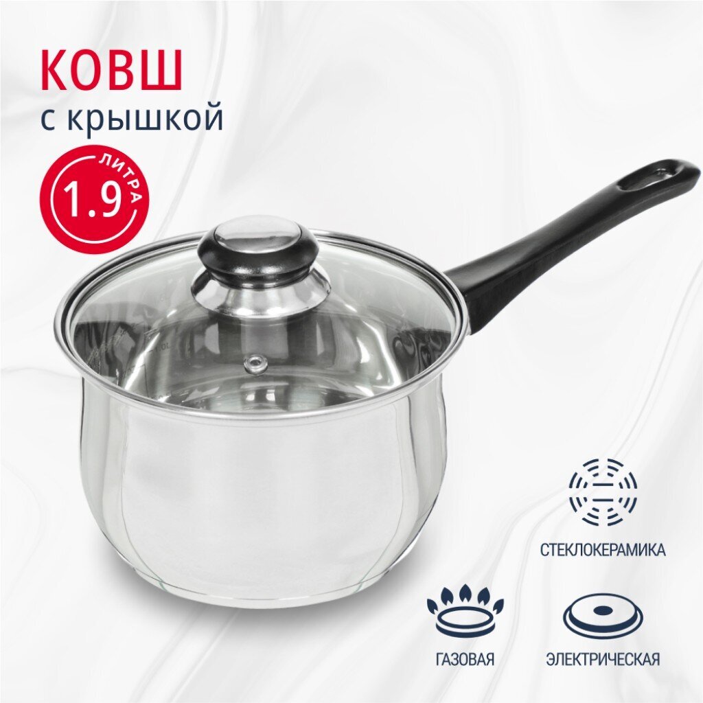 Вы можете приобрести «Ковш нержавеющая сталь, 1.9 л, крышка стекло, бакелитовая ручка, DNN1, SD-A19-16S» и другие товары в нашем интернет-магазине в Смоленске по низким ценам и с бесплатным самовывозом.