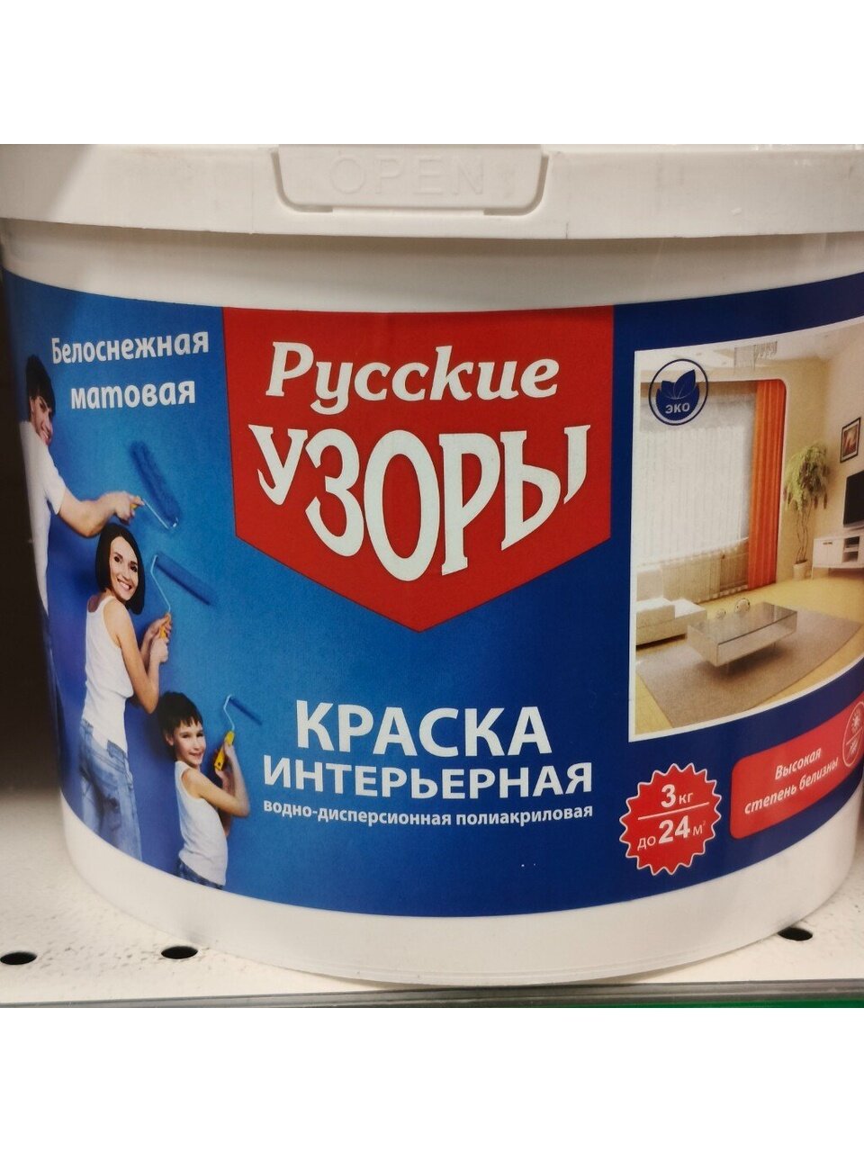 Вы можете приобрести «Краска водно-дисперсионная, Русские узоры, акриловая, интерьерная, матовая, белоснежная, 3 кг» и другие товары в нашем интернет-магазине в Борисоглебске по низким ценам и с бесплатным самовывозом.