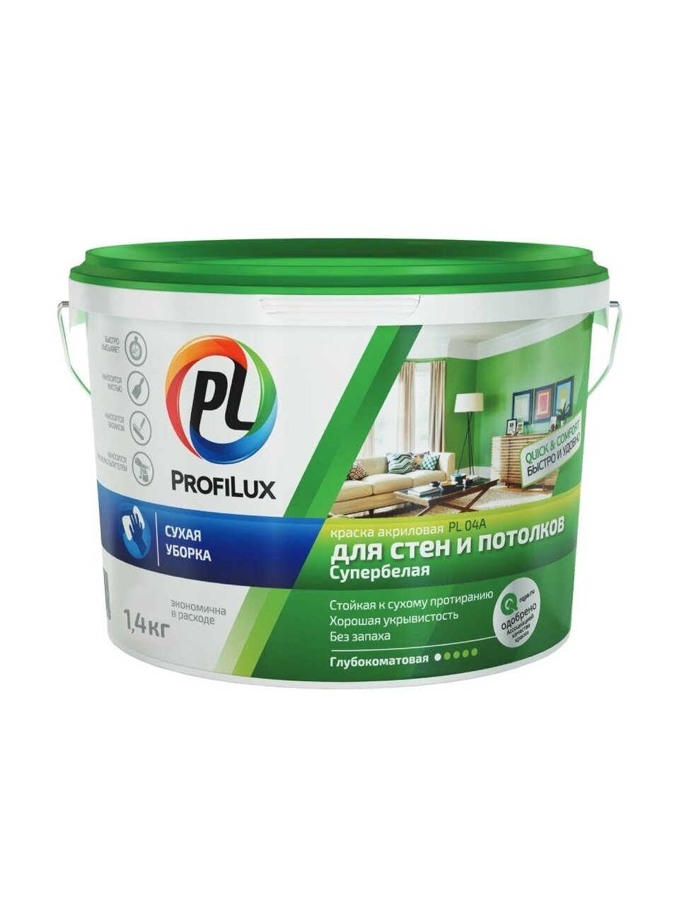 Вы можете приобрести «Краска водно-дисперсионная, Profilux, PL-04A, акриловая, для стен и потолков, матовая, супербелая, 1.4 кг» и другие товары в нашем интернет-магазине в Борисоглебске по низким ценам и с бесплатным самовывозом.