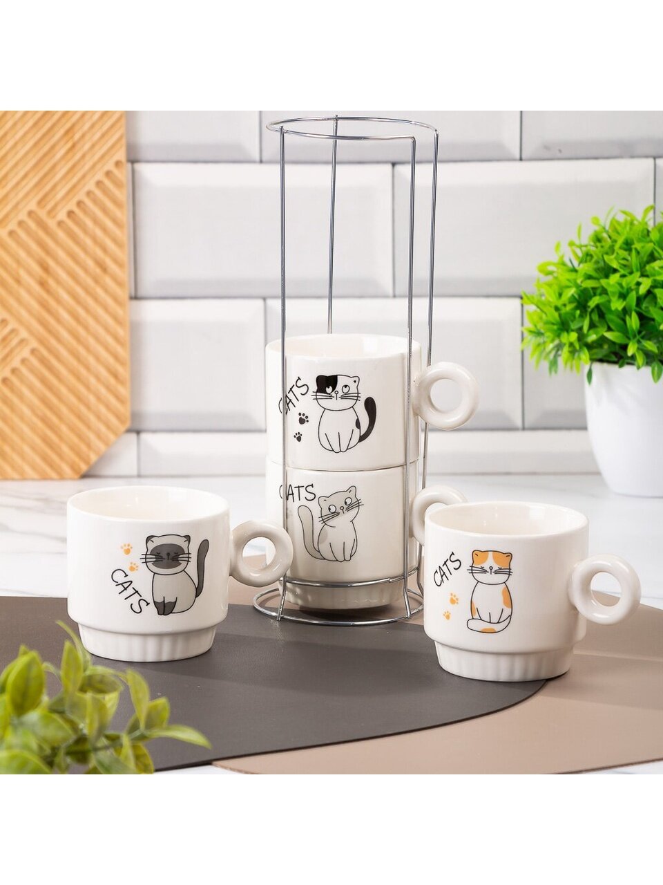 Набор кружек из керамики «Зверушки» — это удачное решение для тех, кто ищет недорогой подарок для дома, дачи или офиса. Керамика сохраняет температуру напитка, не впитывает запахи и легко очищается в посудомоечной машине. Благодаря объёму 250 мл, кружки подходят для чая, кофе, какао и даже горячего шоколада. Металлическая подставка экономит место на кухне и делает хранение эстетичным.