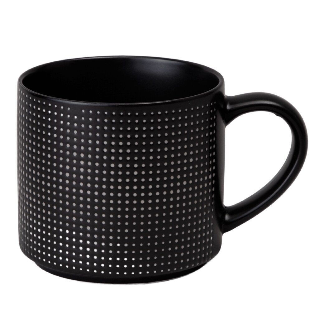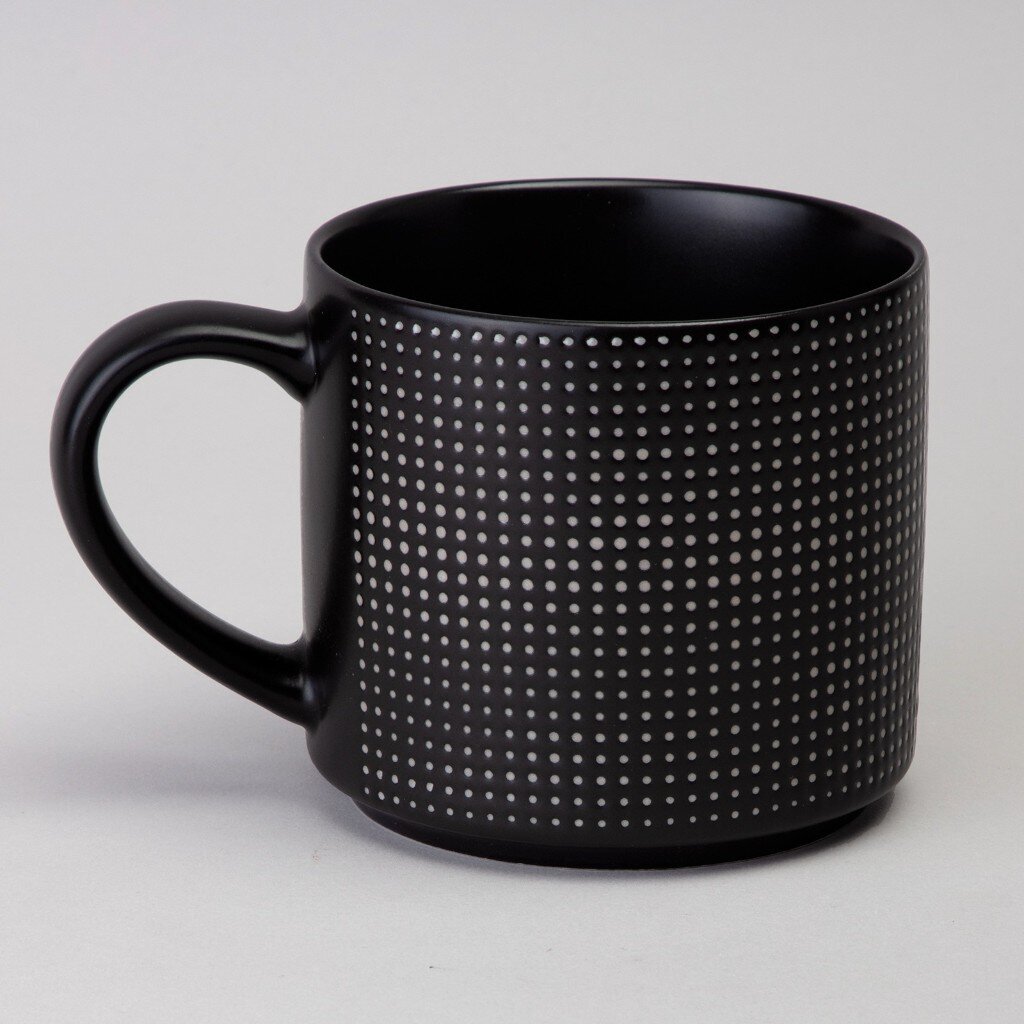 - Уникальный дизайн: черная фарфоровая кружка с лаконичным горошком впишется в любой интерьер — от лофта до минимализма