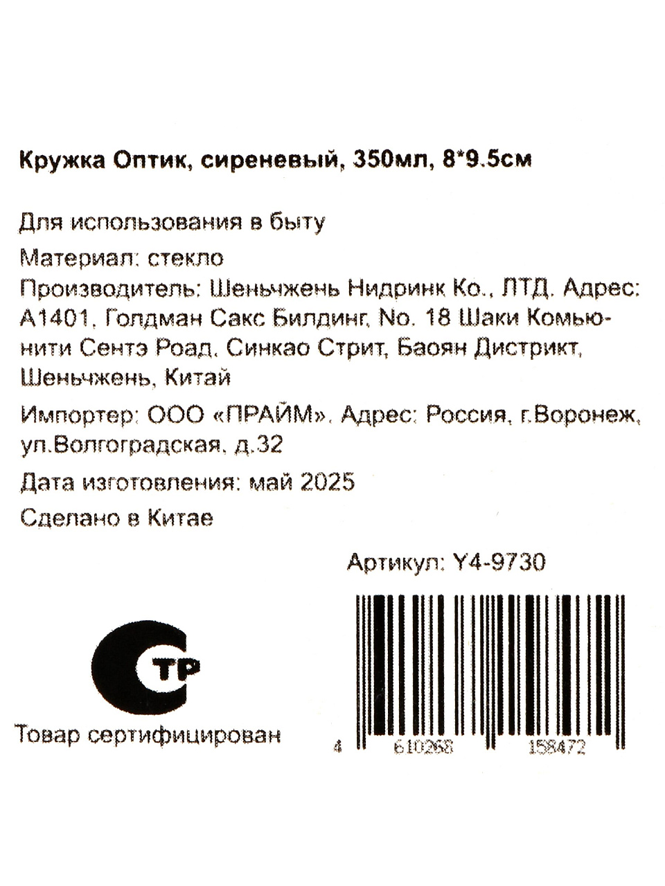 Вы можете приобрести «Кружка стекло, 350 мл, Оптик, 8*9.5 см, Y4-9730, сиреневая» и другие товары в нашем интернет-магазине в Липецке по низким ценам и с бесплатным самовывозом.