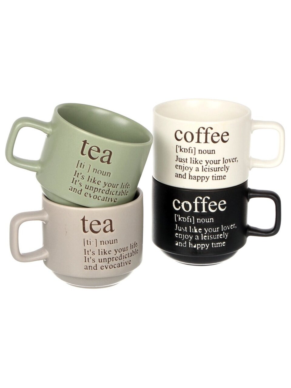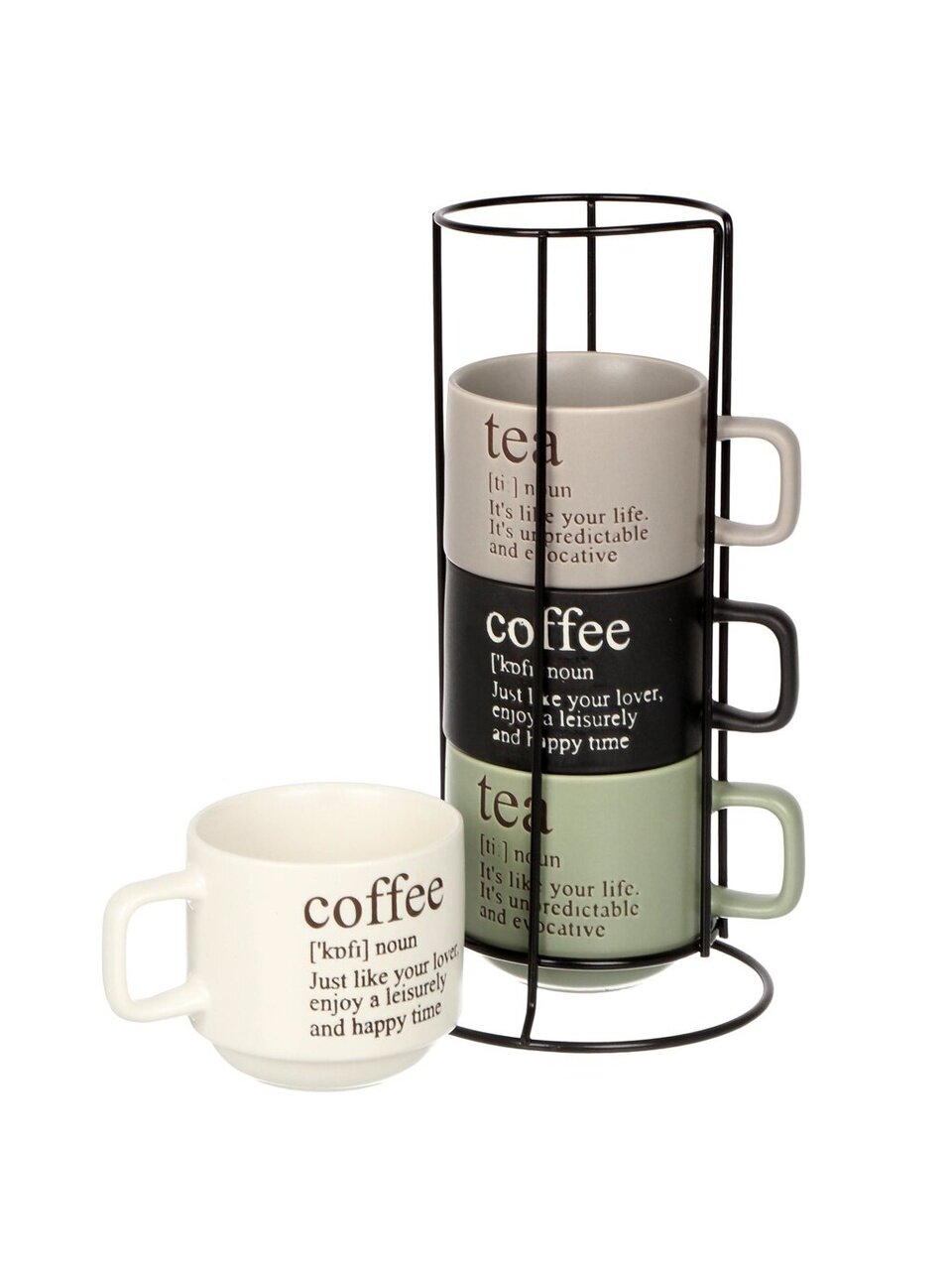Набор из 4 керамических кружек «Настроение вкуса» (250 мл) с металлической подставкой — стильный подарок и практичное решение для дома и дачи. Подходит для посудомоечной машины и СВЧ.