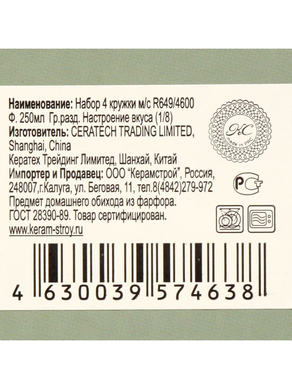 Вы можете приобрести «Кружка керамика, 4 шт, 250 мл, Настроение вкуса, металлическая подставка, R649/4600» и другие товары в нашем интернет-магазине в Таганроге по низким ценам и с бесплатным самовывозом.