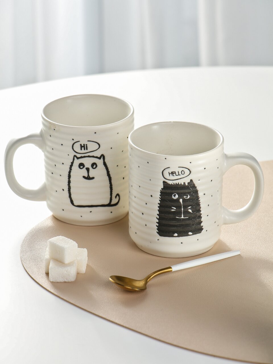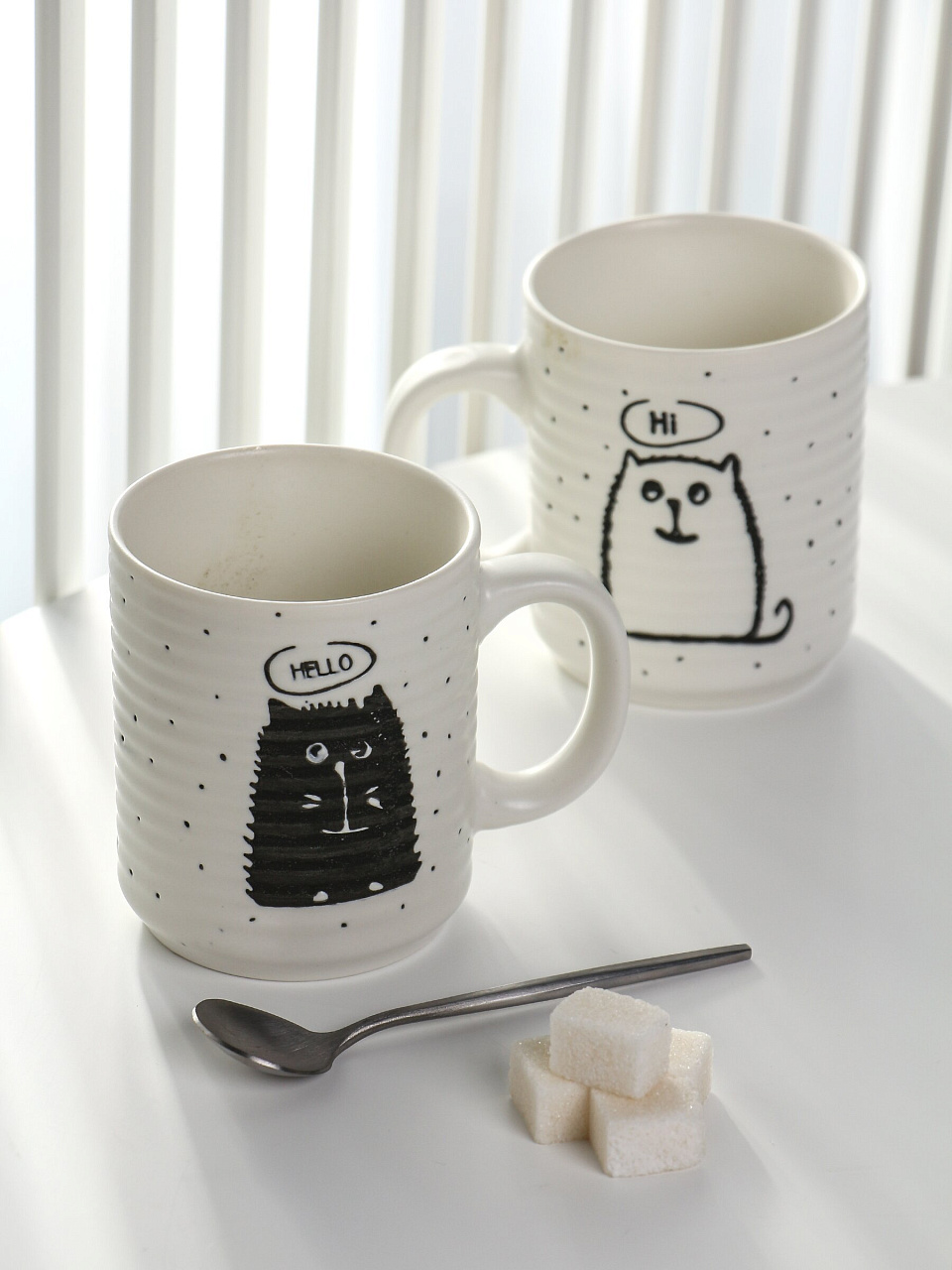 Набор фарфоровых кружек «Котоморды» 340 мл (2 шт) — стильный подарок для дома и дачи, подходит для СВЧ и посудомоечной машины.