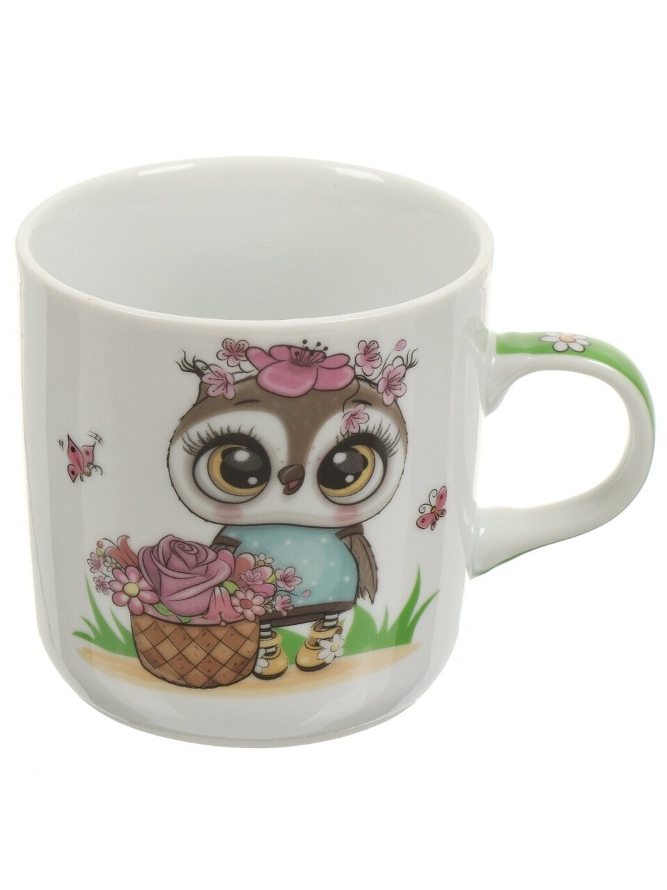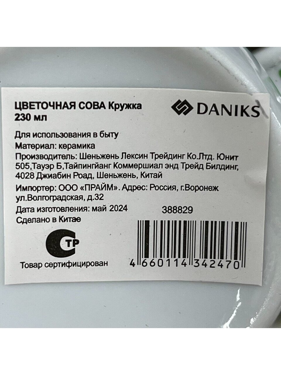 Керамическая кружка Daniks "Цветочная сова", 230 мл: стильный подарок для дома и офиса, подходит для СВЧ и посудомоечной машины.