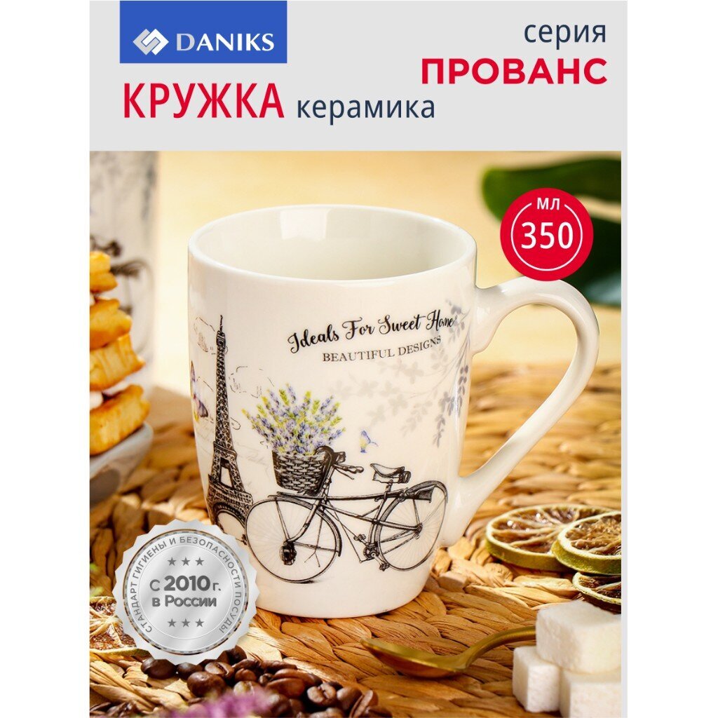 Керамическая кружка Daniks Прованс 350 мл: стиль Прованс, универсальность, подходит для СВЧ и посудомойки — идеальный подарок и уют каждый день.