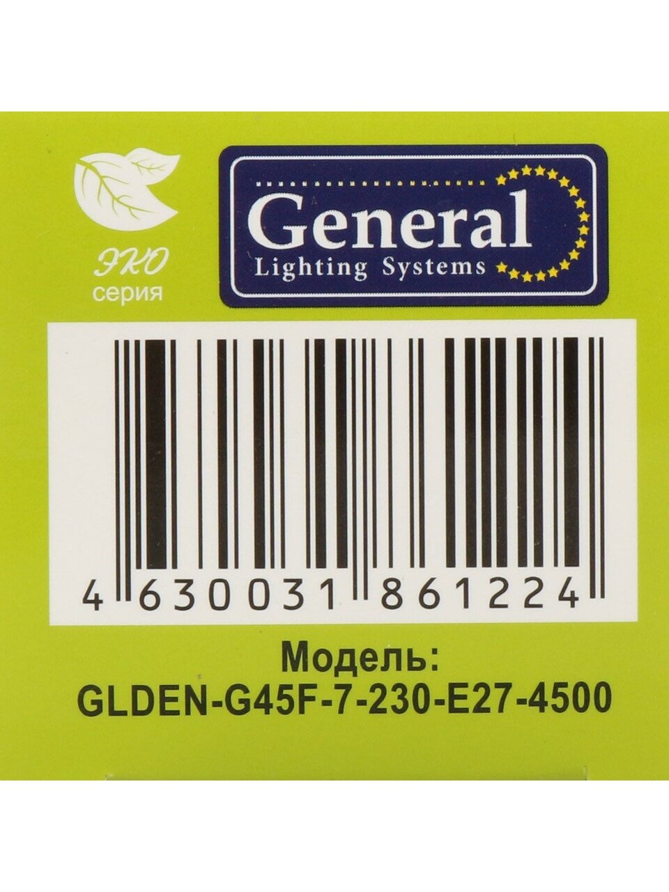 Вы можете приобрести «Лампа светодиодная E27, 7 Вт, 230 В, шар, 4500 К, нейтральный белый свет, General Lighting Systems, GLDEN-G45F, 639800» и другие товары в нашем интернет-магазине в Краснодаре по низким ценам и с бесплатным самовывозом.