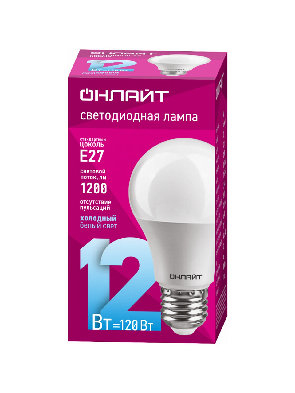 Вы можете приобрести «Лампа светодиодная E27, 12 Вт, 120 Вт, груша, 6500 К, холодный белый свет, Онлайт, 61141» и другие товары в нашем интернет-магазине в Клинцах по низким ценам и с бесплатным самовывозом.