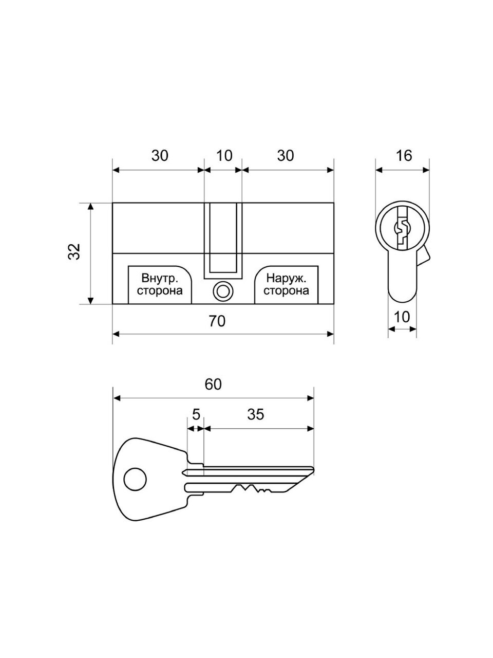 Замок устойчив к воздействиям внешней среды и надежен при любых условиях эксплуатации. Личинка замка универсальная, подходит как для входной двери, так и для межкомнатной. Предназначен для установки в деревянные и легкие металлические двери толщиной до 50мм.
