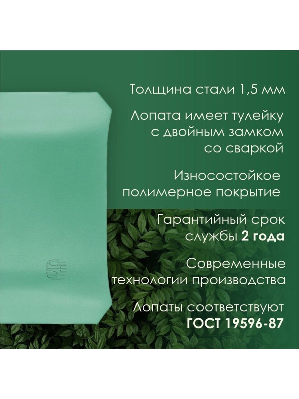 Цвет лопаты — бирюзовый, что придаст вашему инструментарию стильный вид. Обратите внимание, что лопата продается без черенка, диаметр крепления — 40 мм.