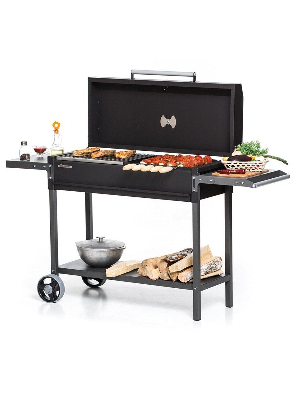 - Алюминиевая ручка на крышке барбекю не даст обжечься.
