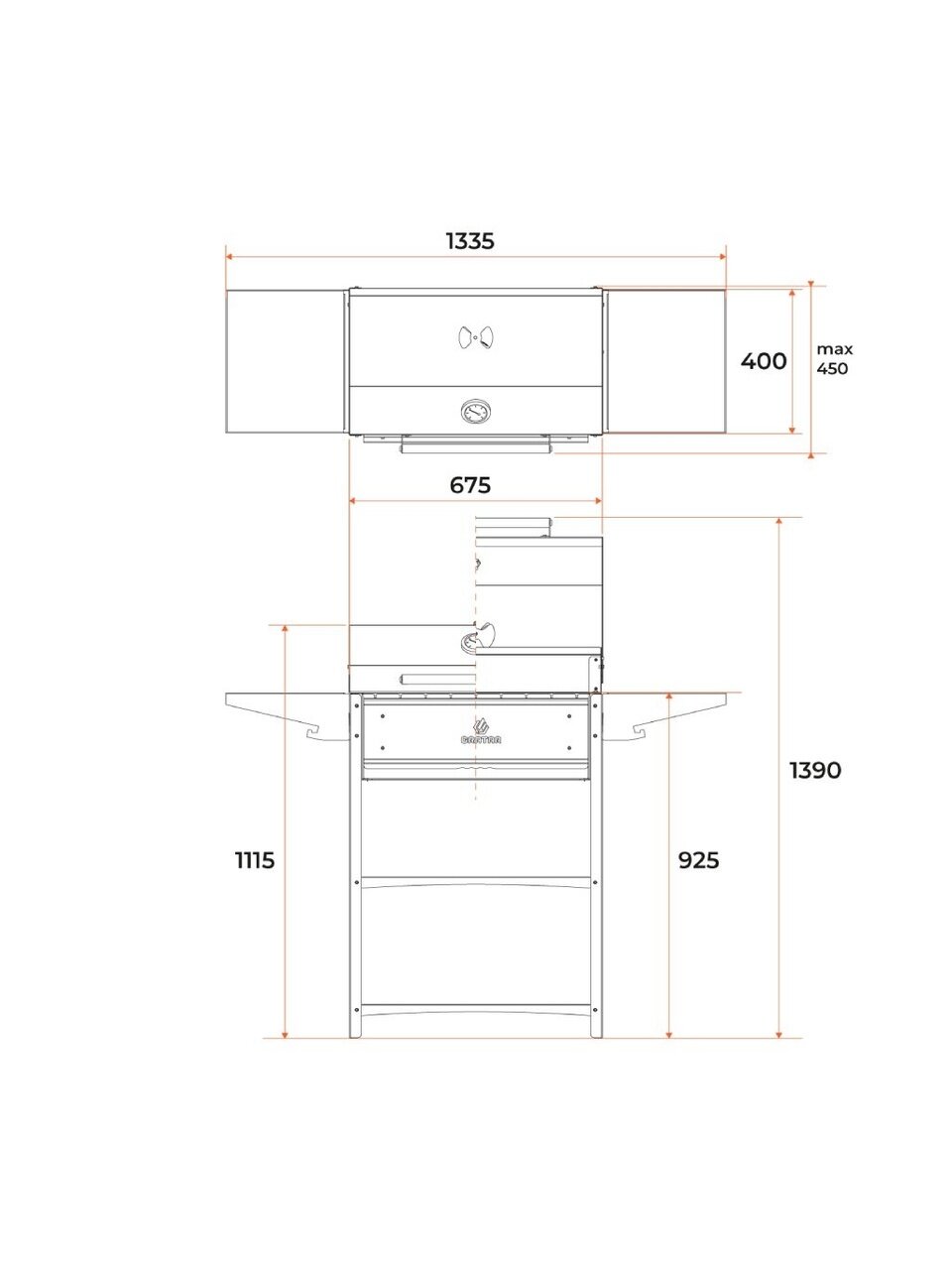 - Предусмотрен паз для установки вертела.