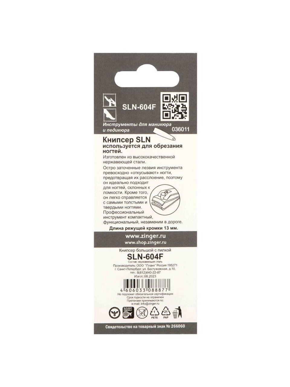 Вы можете приобрести «Кусачки книпсер для ногтей, нержавеющая сталь, 8.5х1.5х1.3 см, с пилкой, Zinger, zo-SLN-604-F» и другие товары в нашем интернет-магазине в Астрахани по низким ценам и с бесплатным самовывозом.