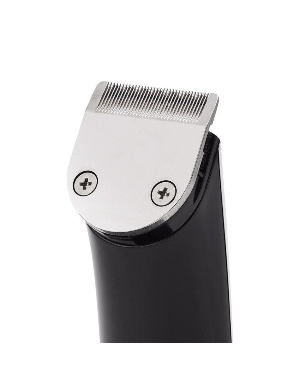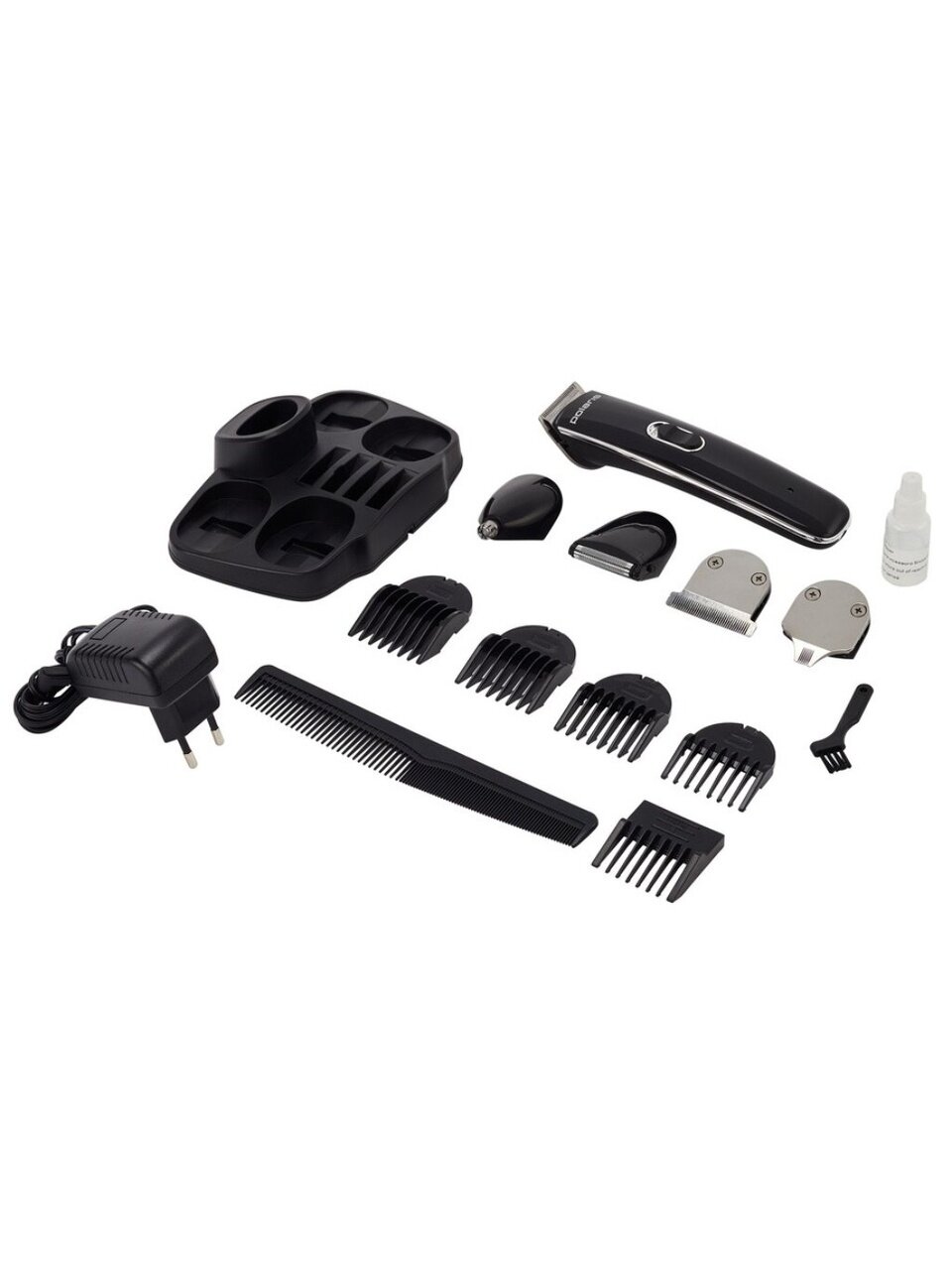 - полный комплект: включает телескопическую насадку, триммеры (шириной 5, 30, 38 мм), триммеры для удаления волос в носу и ушах, насадки на широкий триммер (3, 6, 9 и 12 мм), мини-бритву и подставку для подзарядки и хранения прибора и комплектующих.