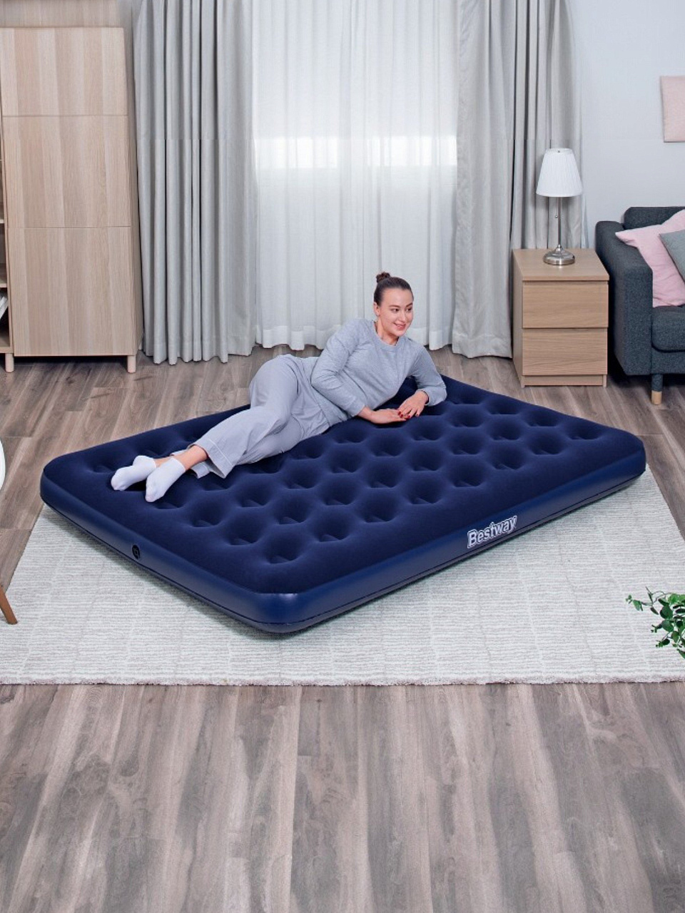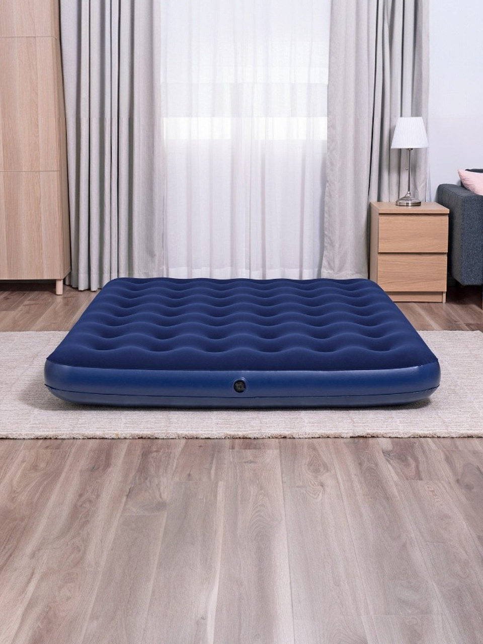 Матрас Bestway, выполненный из прочного флокированного винила, обеспечивает комфортный и здоровый сон в любых условиях. Его уникальная конструкция позволяет ему сохранять форму даже при неравномерном распределении нагрузки. Этот матрас легко надувать и сдувать, что делает его прекрасным выбором для путешествий или отдыха на природе. Кроме того, он может служить дополнительным спальным местом в квартире или доме. Если пространство ограничено, надувные матрасы становятся отличным решением для размещения гостей. Всё, что нужно сделать, - это надуть матрас и разместить его в свободной комнате.