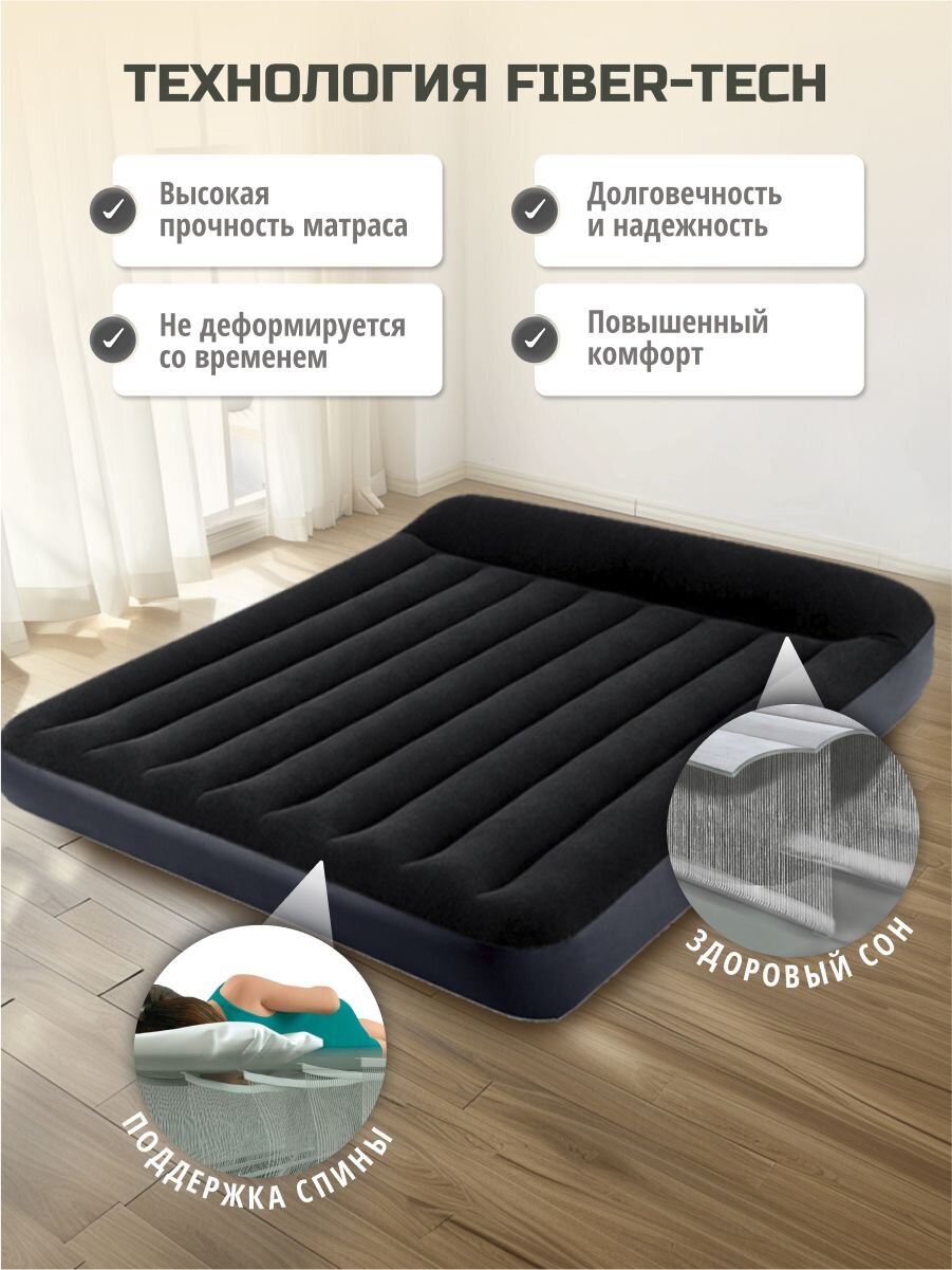 Вместо традиционных перегородок из ПВХ, Intex использует большое количество высокопрочных волокон, что предотвращает их растяжение и деформацию в процессе использования. Благодаря этому, матрас не проминается и не продавливается, обеспечивая здоровый и комфортный сон.