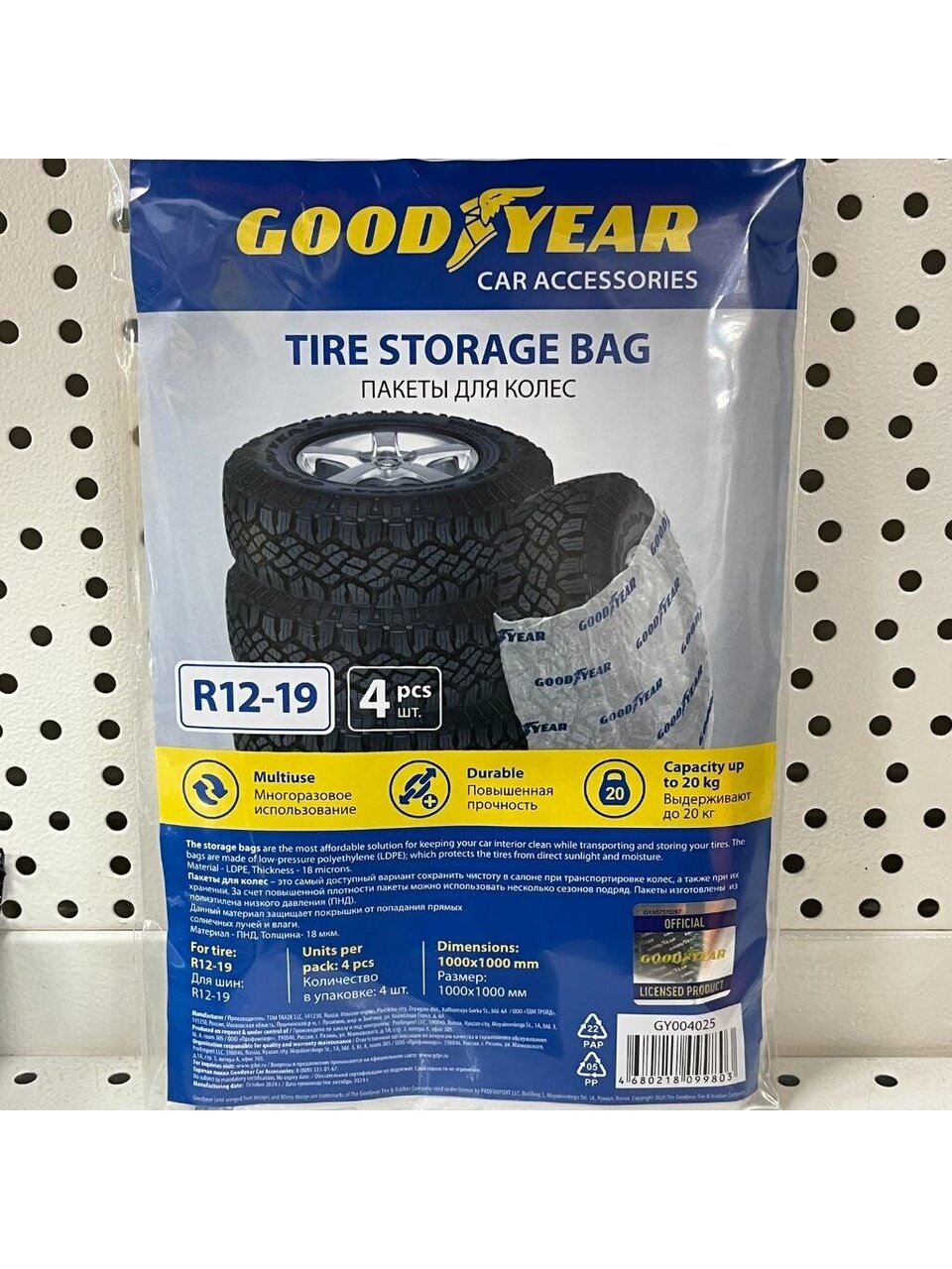 Вы можете приобрести «Пакеты для колес 100х100 см, 4 шт, 18 мкм, R12-19, Goodyear, GY004025» и другие товары в нашем интернет-магазине в Серпухове по низким ценам и с бесплатным самовывозом.