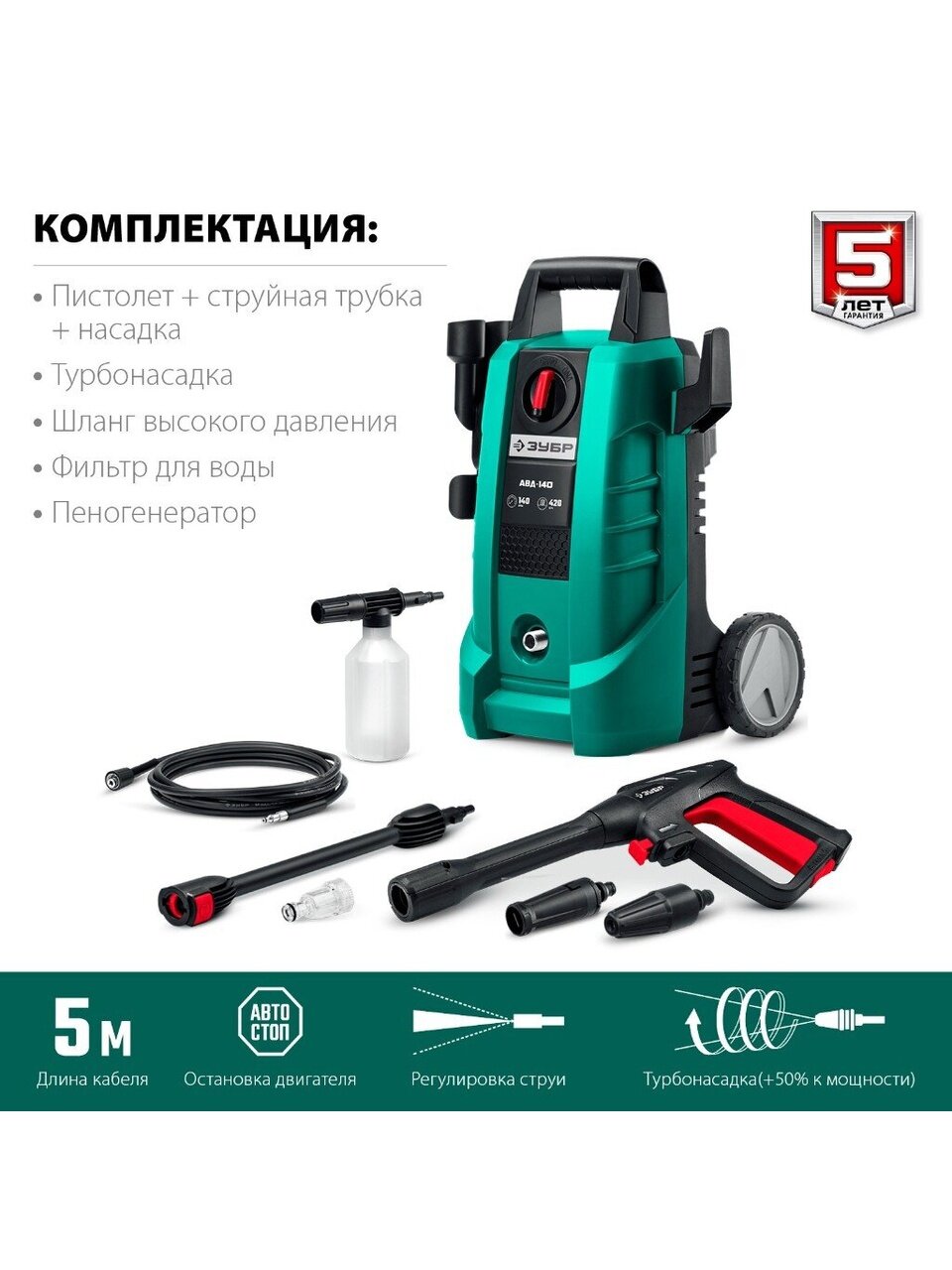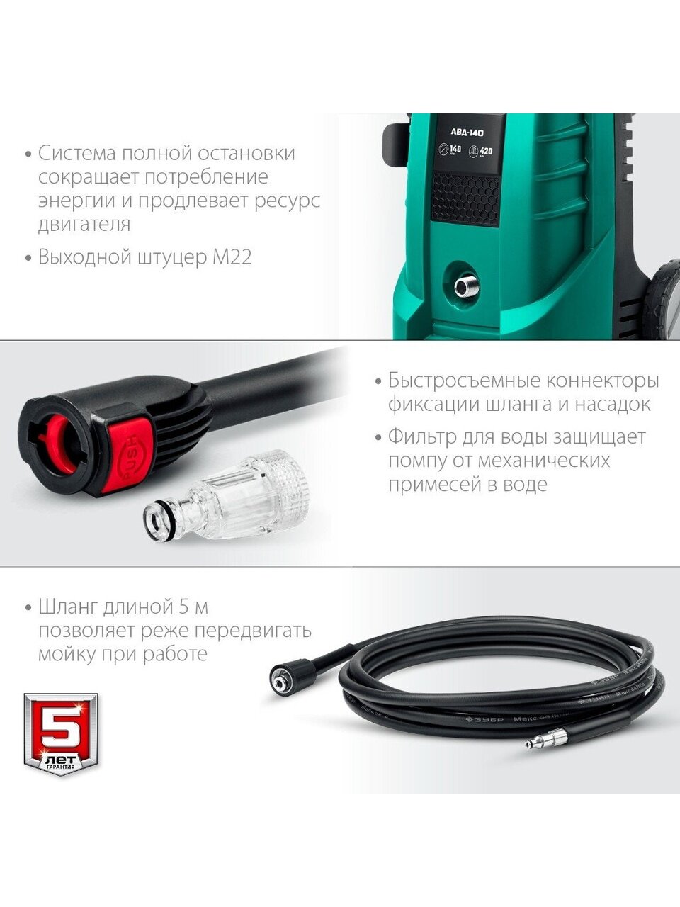 - Длина шланга: 5 м.