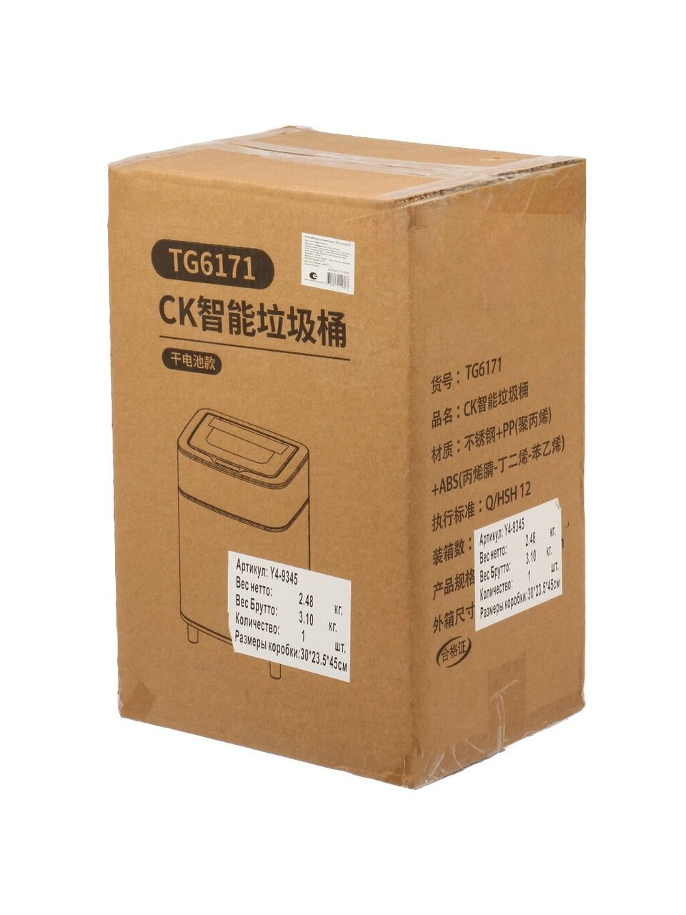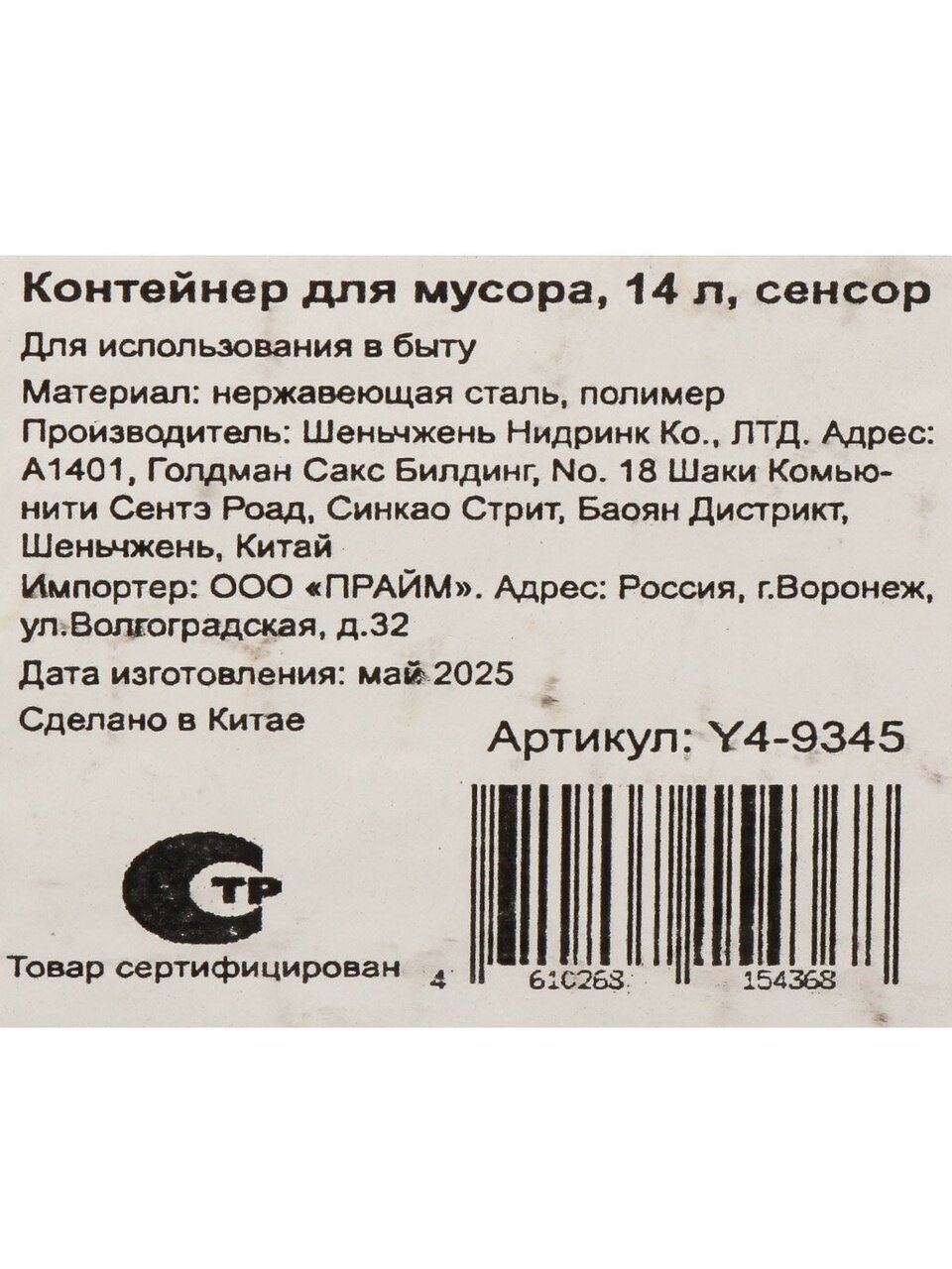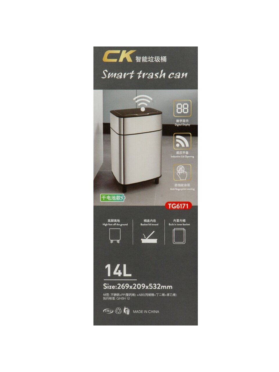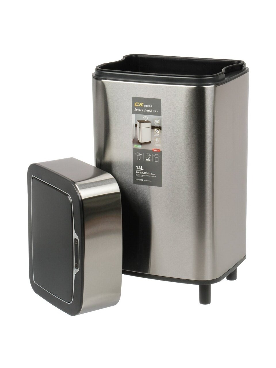Контейнер для мусора нержавеющая сталь, 14 л, прямоугольный, сенсорный, без батареи, Y4-9345