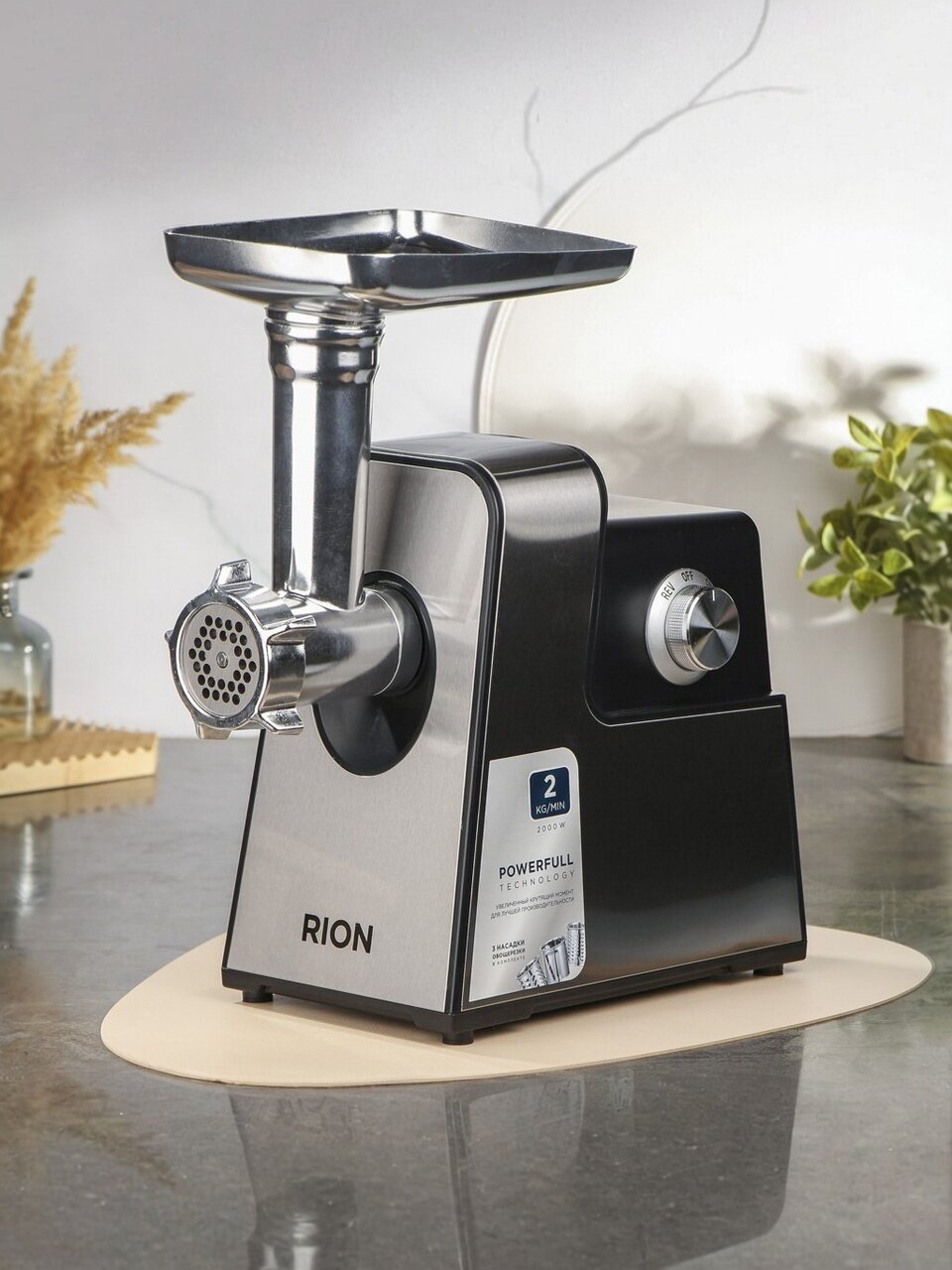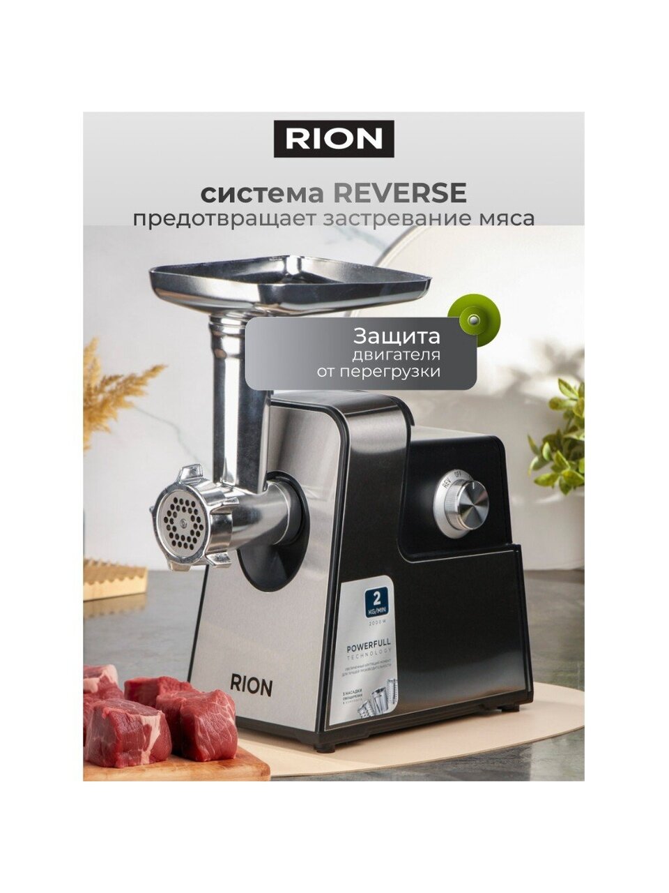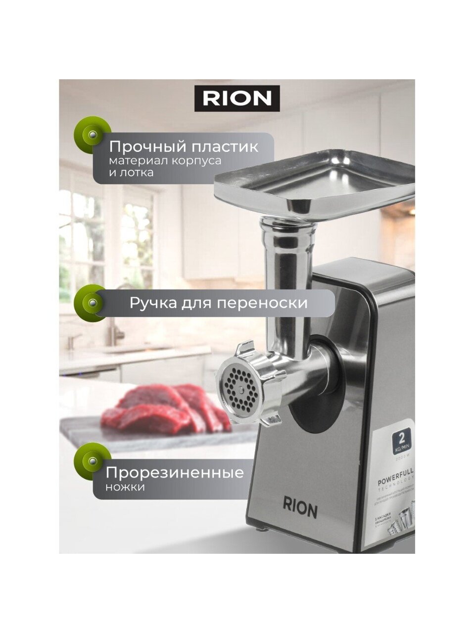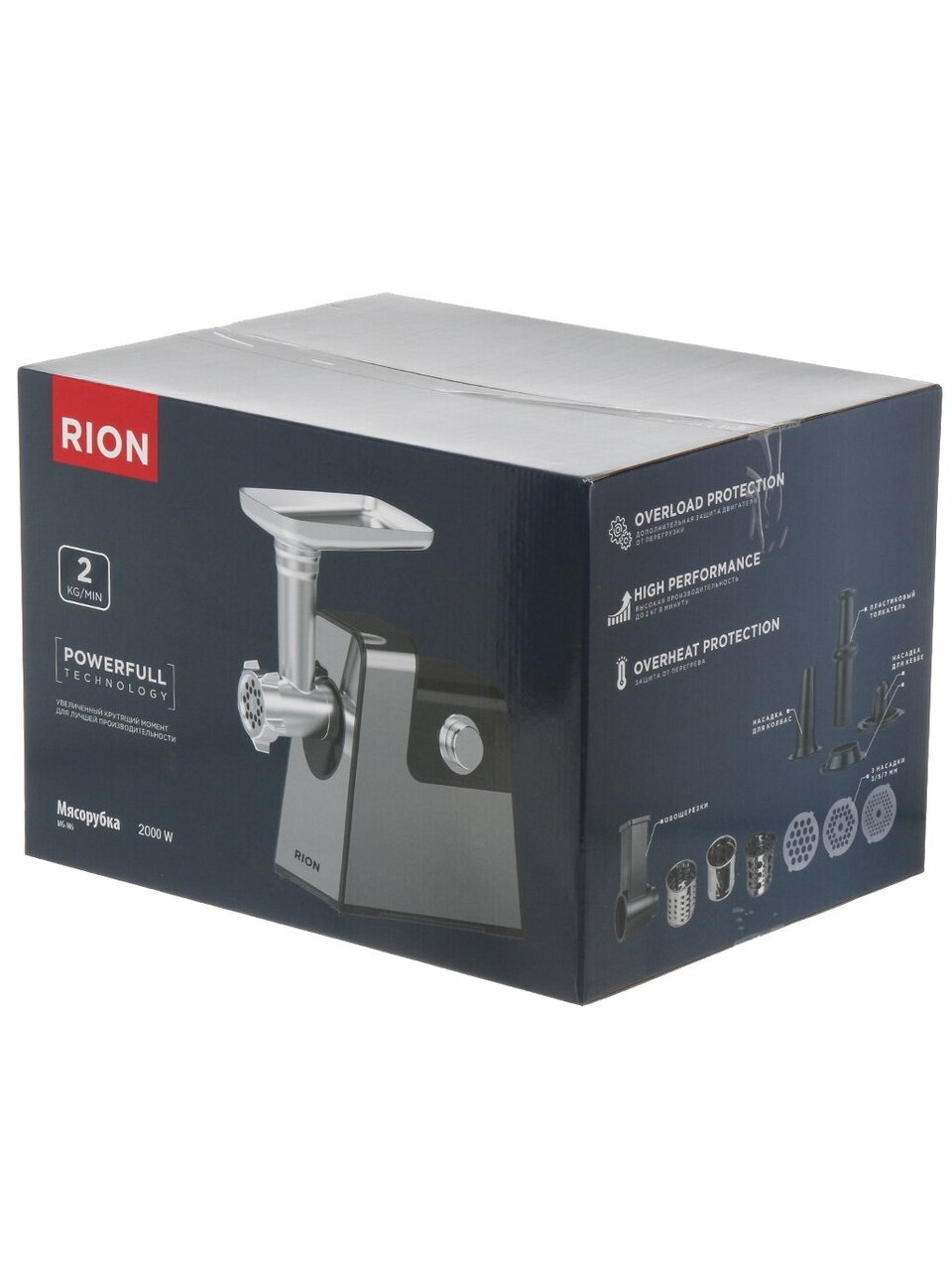 Мясорубка электрическая Rion, MG-M6, 2000 Вт, реверс, 2 кг/мин, пластик, 5 насадок, черная